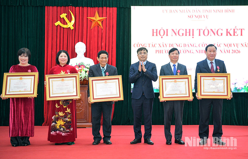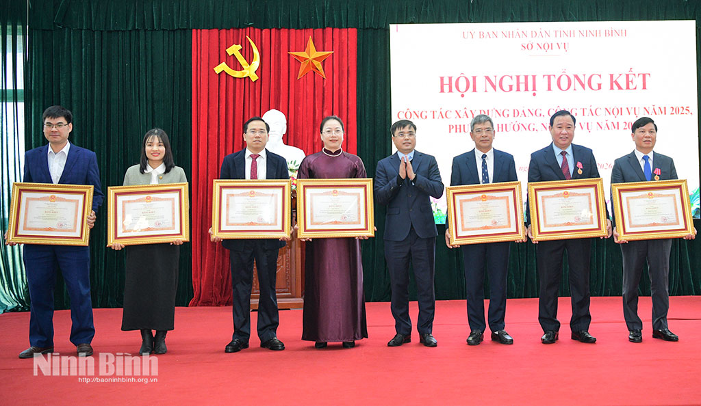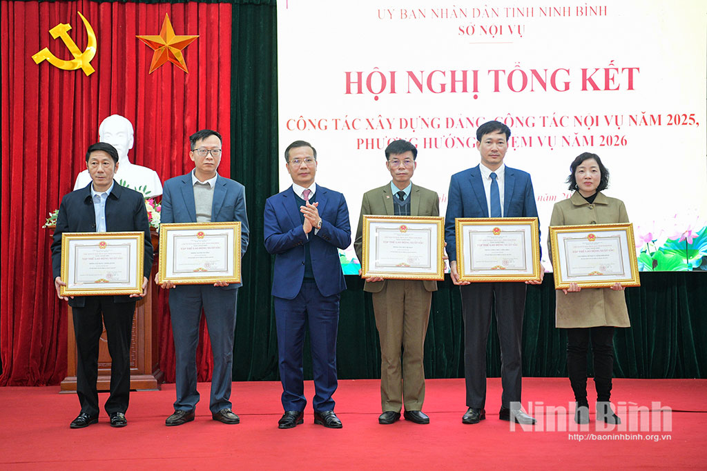 Tại hội nghị, thừa ủy quyền của Chủ tịch nước, đồng chí Giám đốc Sở Nội vụ đã trao Huân chương Lao động hạng Nhì, hạng Ba cho 5 cá nhân đạt thành tích tiêu biểu xuất sắc. Các tập thể, cá nhân đạt thành tích xuất sắc trong thực hiện nhiệm vụ năm 2025 của ngành Nội vụ đã được biểu dương, khen thưởng.