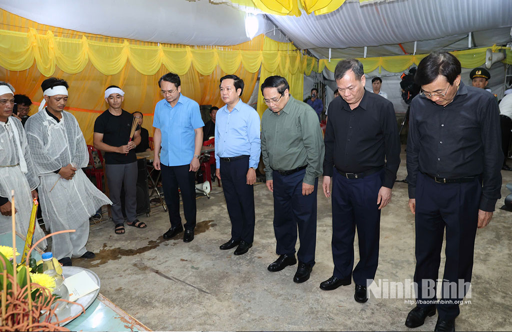 Tối 30/9, Thủ tướng Chính phủ Phạm Minh Chính cùng Đoàn công tác của Chính phủ đã về thăm hỏi, động viên gia đình các nạn nhân thiệt mạng do lốc xoáy tại Ninh Bình. Cùng đi có đồng chí Trần Văn Sơn, Ủy viên Trung ương Đảng, Bộ trưởng, Chủ nhiệm Văn phòng Chính phủ; các đồng chí lãnh đạo Bộ Nông nghiệp và Môi trường; Văn phòng Chính phủ…
