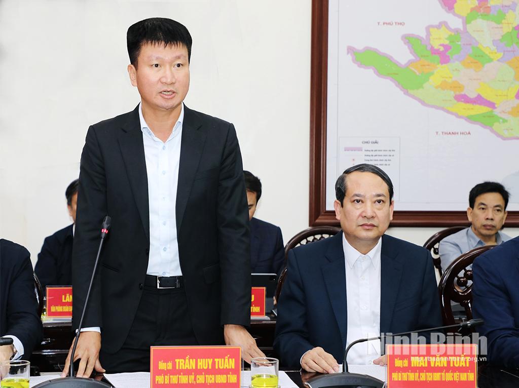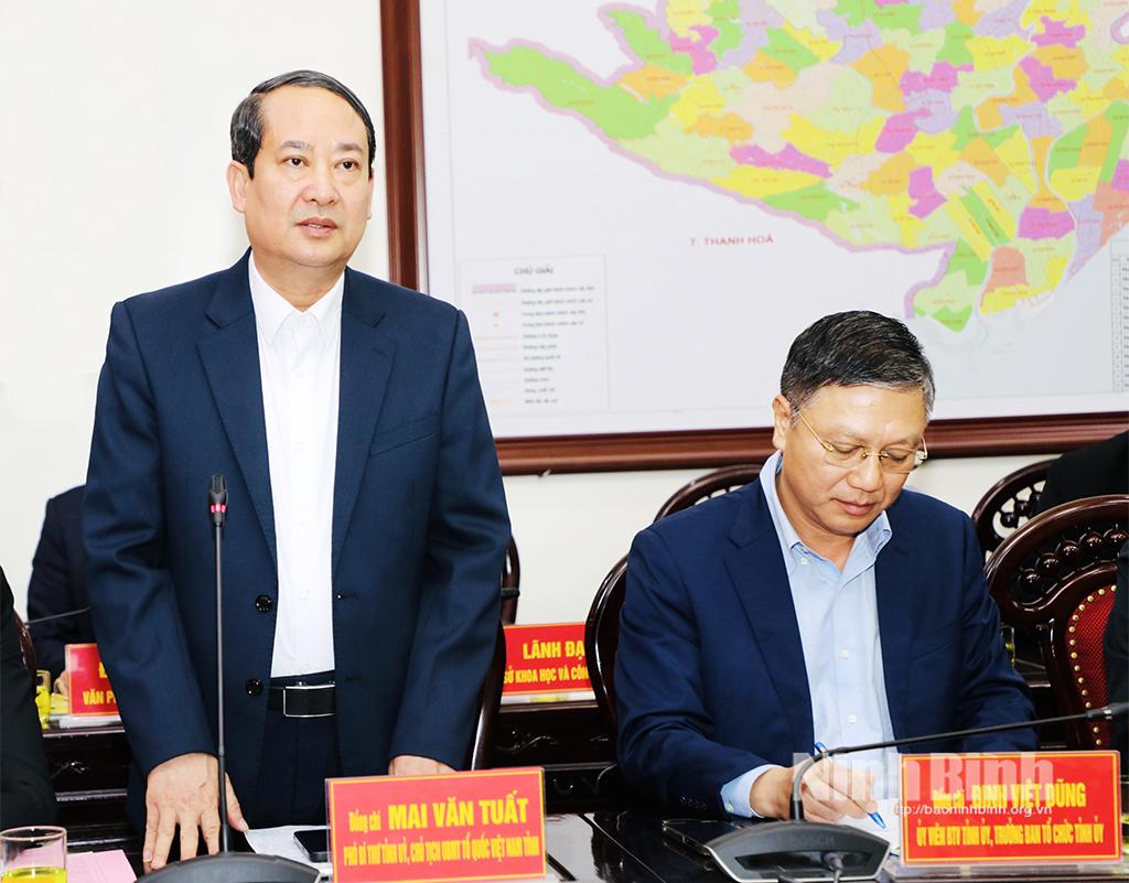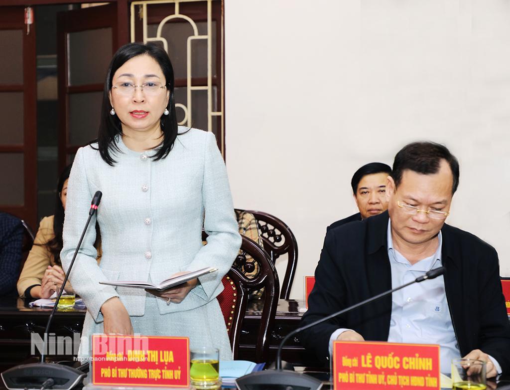 Các đồng chí: Đinh Thị Lụa, Phó Bí thư Thường trực Tỉnh ủy; Lê Quốc Chỉnh, Phó Bí thư Tỉnh ủy, Chủ tịch HĐND tỉnh; Trần Huy Tuấn, Phó Bí thư Tỉnh ủy, Chủ tịch UBND tỉnh; Mai Văn Tuất, Phó Bí thư Tỉnh ủy, Chủ tịch Ủy ban MTTQ Việt Nam tỉnh dự buổi làm việc. Cùng dự có các đồng chí Ủy viên Ban Thường vụ Tỉnh ủy; lãnh đạo HĐND, UBND tỉnh; lãnh đạo Văn phòng Tỉnh uỷ, Văn phòng UBND tỉnh, các sở, ban, ngành của tỉnh.
