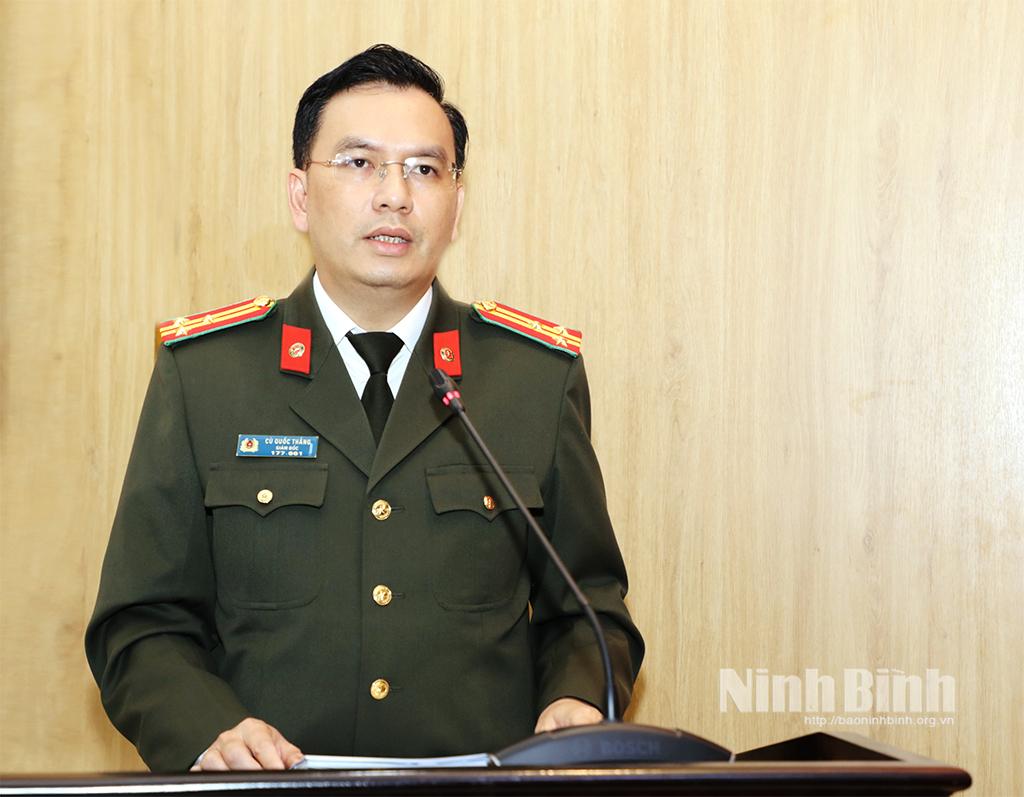 Nhấn mạnh bối cảnh đất nước đang trên đà vươn mình đổi mới, tỉnh Ninh Bình sau hợp nhất có thêm nhiều không gian, điều kiện thuận lợi để phát triển kinh tế - xã hội, nhiệm vụ đặt ra cho cho tỉnh, cho ngành Công an cũng rất nặng nề, đồng chí Bí thư Tỉnh ủy yêu cầu Đảng uỷ Công an tỉnh tiếp tục thực hiện nghiêm túc quy định của Đảng, làm tốt công tác tham mưu cho Tỉnh uỷ, HĐND, UBND tỉnh, Đảng ủy Công an Trung ương trong công tác đảm bảo an ANTT. Phấn đấu xây dựng, nâng cao hình ảnh Công an Ninh Bình luôn đi đầu theo tiêu chí thích ứng - chủ động - tinh nhuệ - hiện đại; cần thay đổi tư duy, đưa ra các yêu cầu cao hơn để nỗ lực phấn đấu hoàn thành nhiệm vụ công tác.