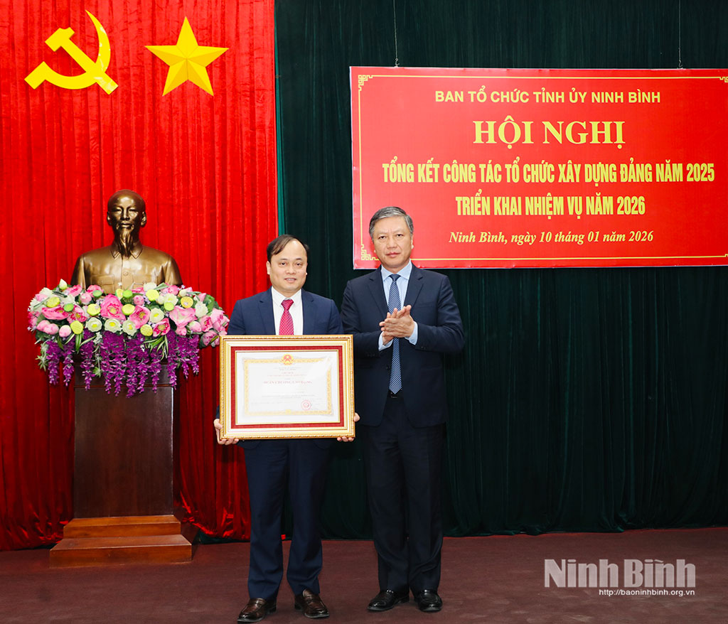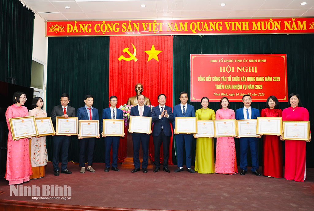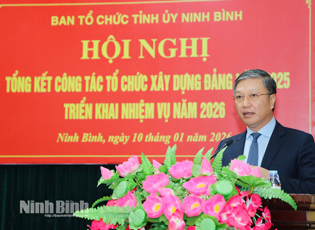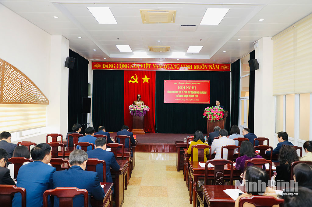 Năm 2025, ngành Tổ chức xây dựng Đảng tỉnh đã tích cực tham mưu triển khai kịp thời, hiệu quả các nhiệm vụ chính trị, nỗ lực đổi mới phương pháp, lề lối, phong cách làm việc, hoàn thành khối lượng lớn công việc, đáp ứng yêu cầu tiến độ và chất lượng. Nổi bật là đã tham mưu công tác lãnh đạo, chỉ đạo và tổ chức thành công Đại hội Đảng các cấp nhiệm kỳ 2025-2030; Đại hội Đảng bộ tỉnh lần thứ I, nhiệm kỳ 2025-2030. Ninh Bình là một trong những địa phương hoàn thành đại hội cấp xã sớm trong toàn quốc, trước kế hoạch 15 ngày; cấp tỉnh nằm trong nhóm 7 tỉnh hoàn thành sớm. Sau đại hội, đã kịp thời tham mưu kiện toàn tổ chức bộ máy, cán bộ; ban hành quy chế, quy định, chương trình hành động, bảo đảm triển khai đồng bộ các nhiệm vụ chính trị.