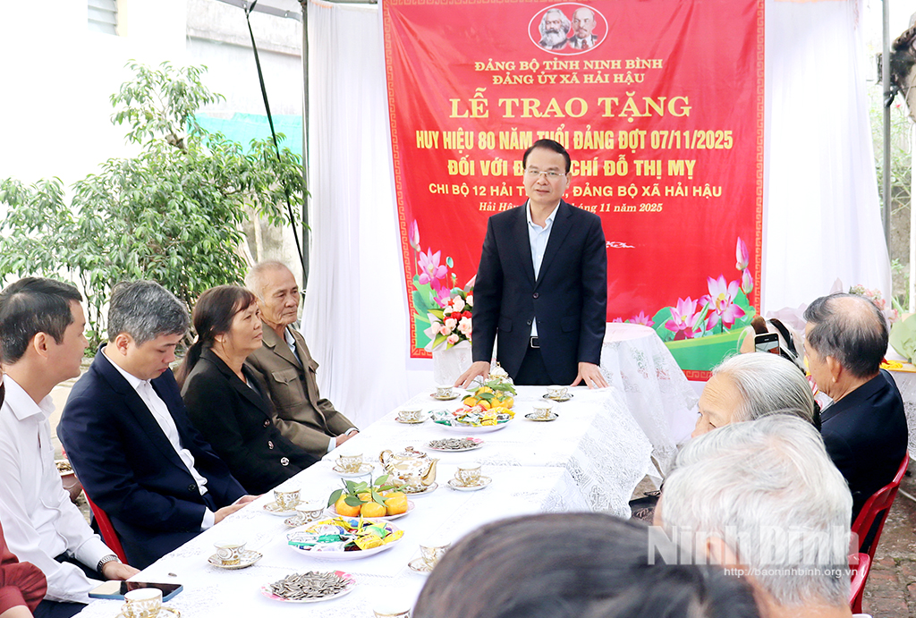 Ngày 16/11, tại xã Hải Hậu, đồng chí Đặng Xuân Phong, Ủy viên Trung ương Đảng, Bí thư Tỉnh ủy, Trưởng Đoàn đại biểu Quốc hội tỉnh đã trao Huy hiệu 80 năm tuổi Đảng cho đảng viên Đỗ Thị Mỵ, ở Chi bộ xóm 12 Hải Trung thuộc Đảng bộ xã Hải Hậu. Đây là đảng viên được Ban Thường vụ Tỉnh ủy quyết định tặng Huy hiệu Đảng nhân dịp kỷ niệm 108 năm Cách mạng Tháng Mười Nga (7/11/1917 - 7/11/2025).