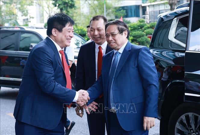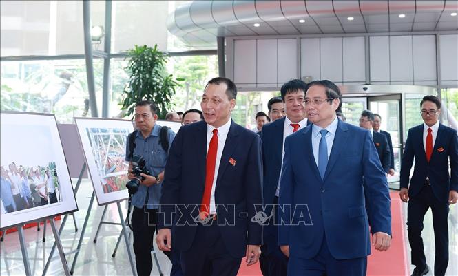 Thủ tướng Phạm Minh Chính đến dự Đại hội Đảng bộ Tập đoàn Điện lực Việt Nam lần thứ IV, nhiệm kỳ 2025 - 2030. Ảnh: Dương Giang/TTXVN