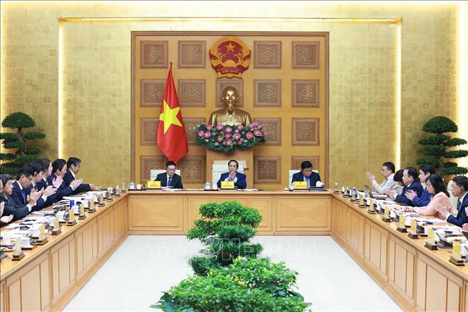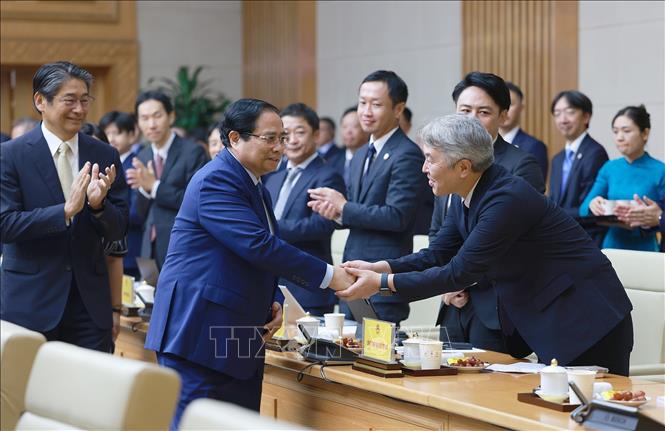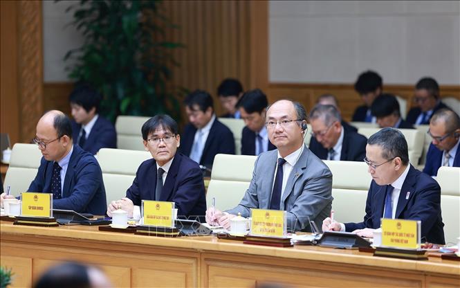 Thủ tướng Phạm Minh Chính với các doanh nghiệp Nhật Bản đang đầu tư tại Việt Nam. Ảnh: Dương Giang/TTXVN