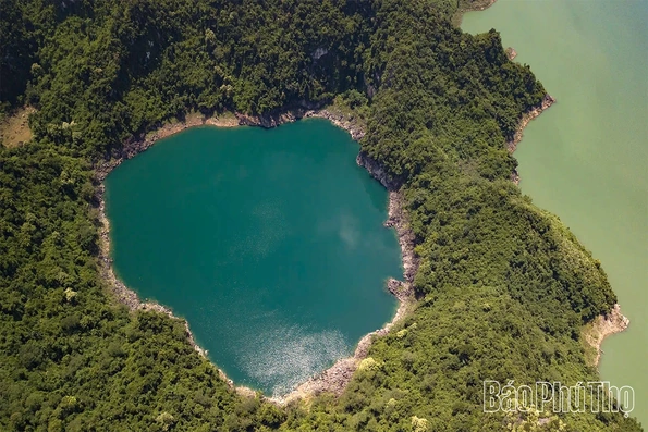Nhìn từ trên cao, hồ Mắt Ngọc là một thế giới hoàn toàn khác biệt với lòng hồ Hòa Bình