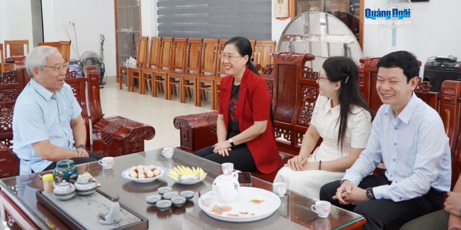 Tại nơi đến thăm, Bí thư Tỉnh ủy Bùi Thị Quỳnh Vân đã ân cần thăm hỏi, chúc các đồng chí nguyên lãnh đạo tỉnh khỏe mạnh, sống vui mỗi ngày. Đồng thời bày tỏ lòng biết ơn sâu sắc đối với những cống hiến của các đồng chí trong công cuộc xây dựng và phát triển đất nước nói chung, quê hương Quảng Ngãi nói riêng.