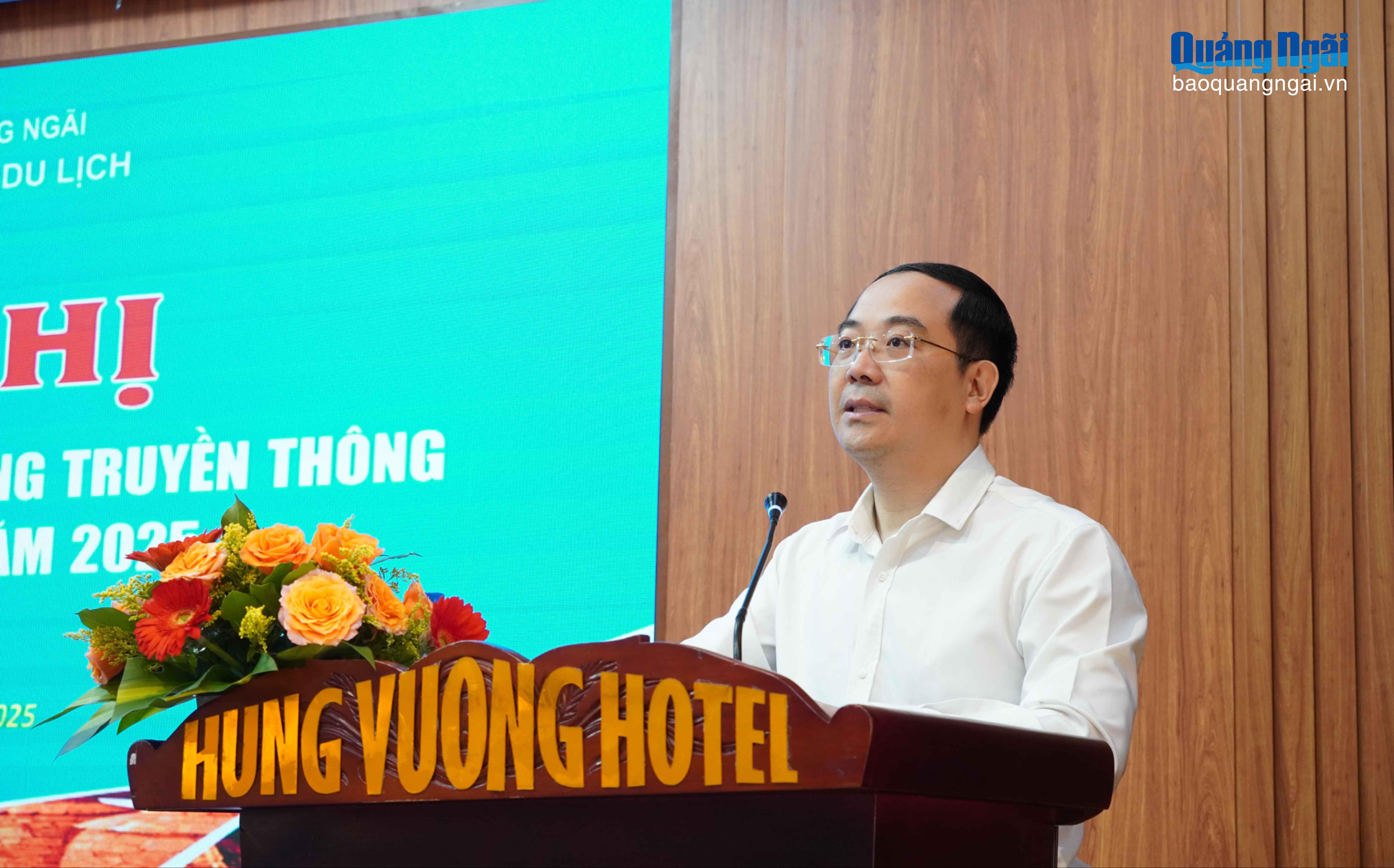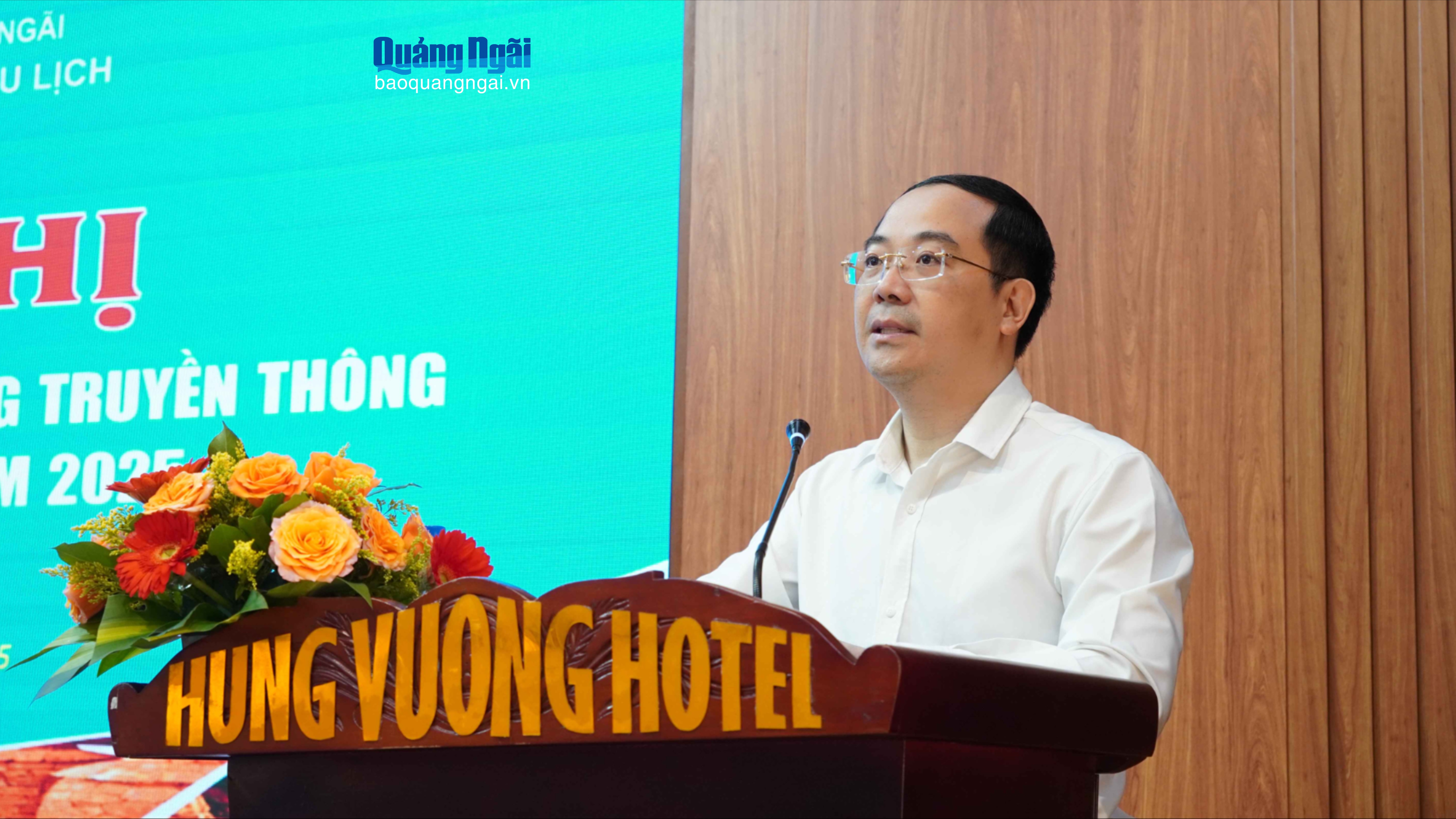 Phó Cục trưởng, Cục Thông tin cơ sở và Thông tin đối ngoại (Bộ VH-TT&DL) Đinh Tiến Dũng trình bày các chuyên đề tại hội nghị.