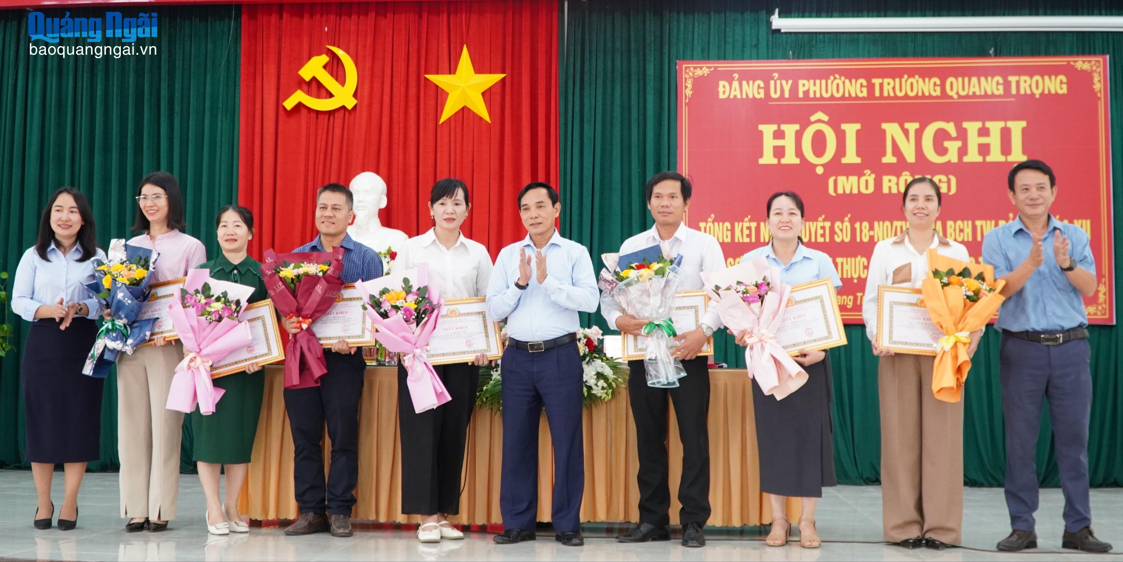 Dịp này, Ban Thường vụ Đảng ủy phường khen thưởng 7 cá nhân có thành tích tiêu biểu trong triển khai, thực hiện Nghị quyết số 18-NQ/TW.