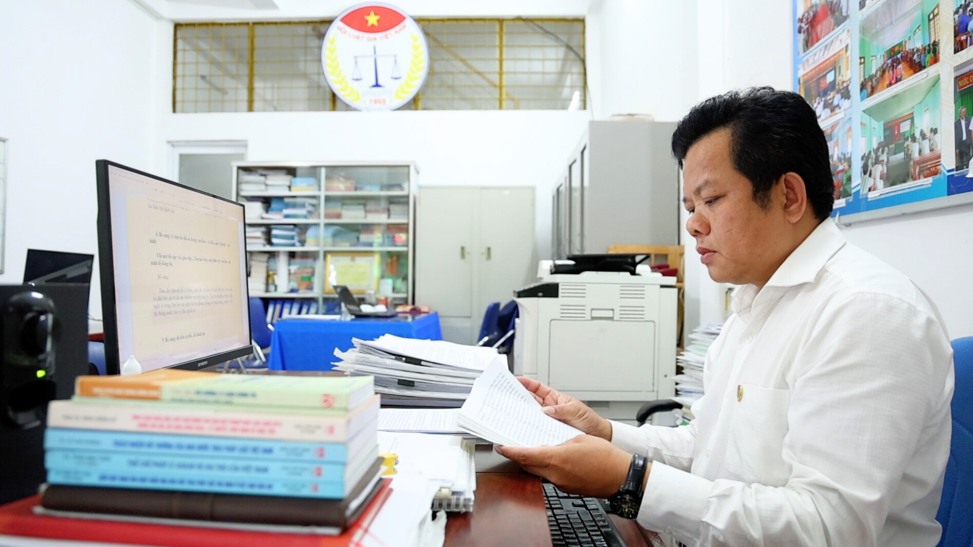 Luật sư Nguyễn Xuân Vũ - Trưởng Văn phòng Luật sư KB và cộng sự, Đoàn Luật sư tỉnh, nghiên cứu dự thảo Báo cáo chính trị trình Đại hội đại biểu Đảng bộ tỉnh Quảng Ngãi lần thứ I, nhiệm kỳ 2025 - 2030.