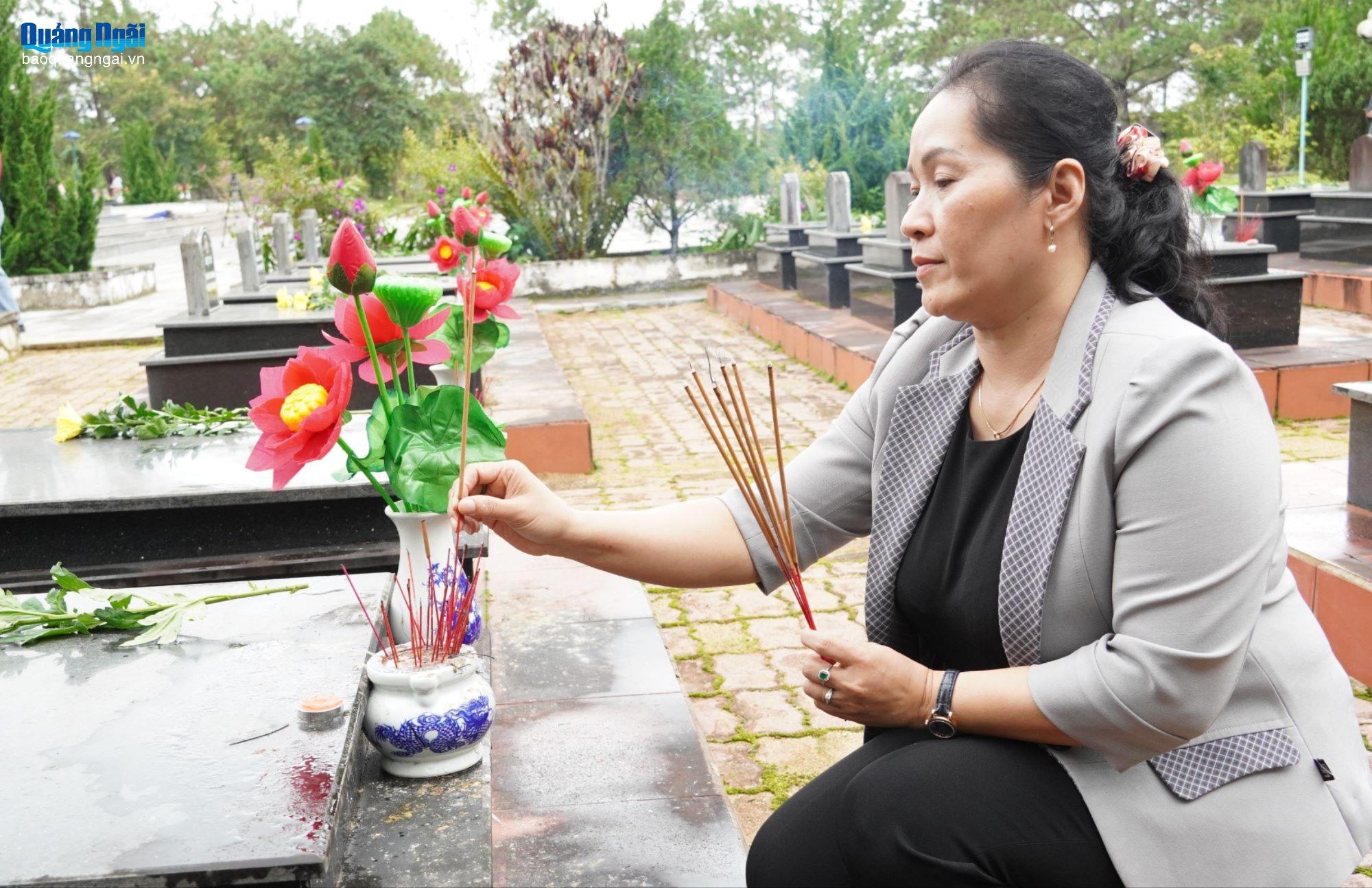 Phó Bí thư Tỉnh ủy Đinh Thị Hồng Minh thắp hương các phần mộ liệt sĩ tại Nghĩa trang Liệt sĩ xã Măng Đen.