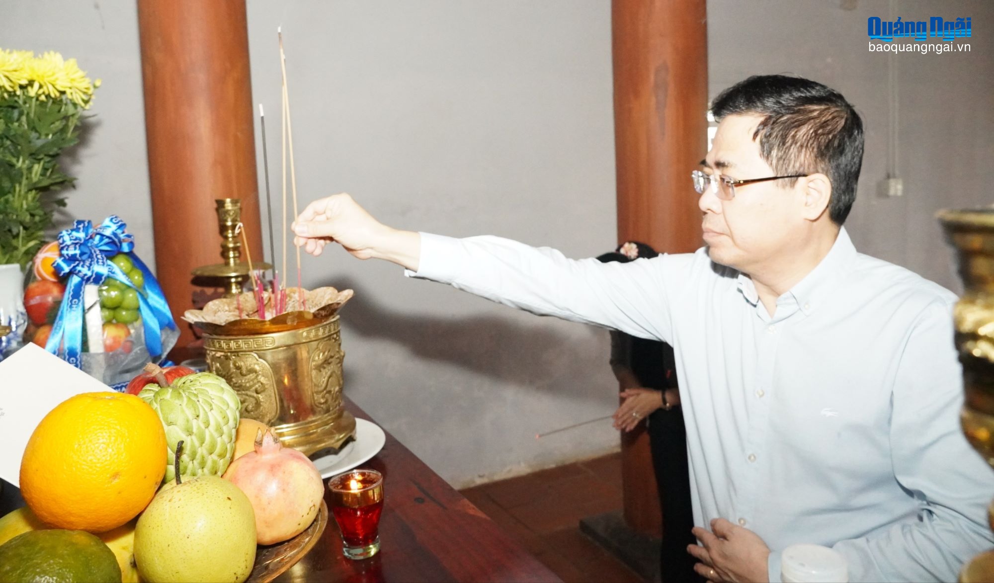 Phó Bí thư Tỉnh ủy, Chủ tịch UBND tỉnh Nguyễn Hoàng Giang dâng hương tại Đền tưởng niệm Liệt sĩ Trường Sơn.