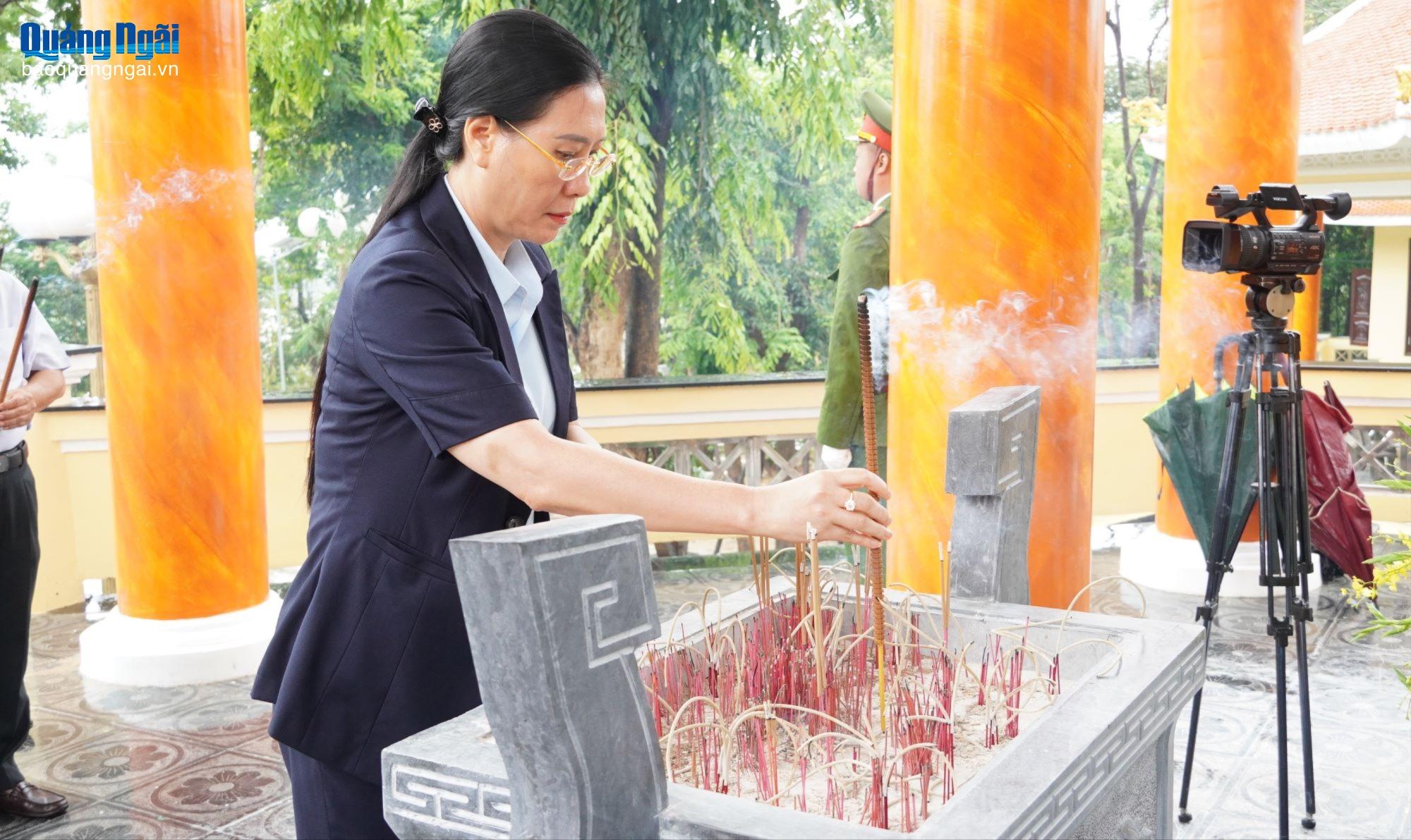 Ủy viên Trung ương Đảng, Bí thư Tỉnh ủy Bùi Thị Quỳnh Vân dâng hương tại Đền tưởng niệm Liệt sĩ Trường Sơn.