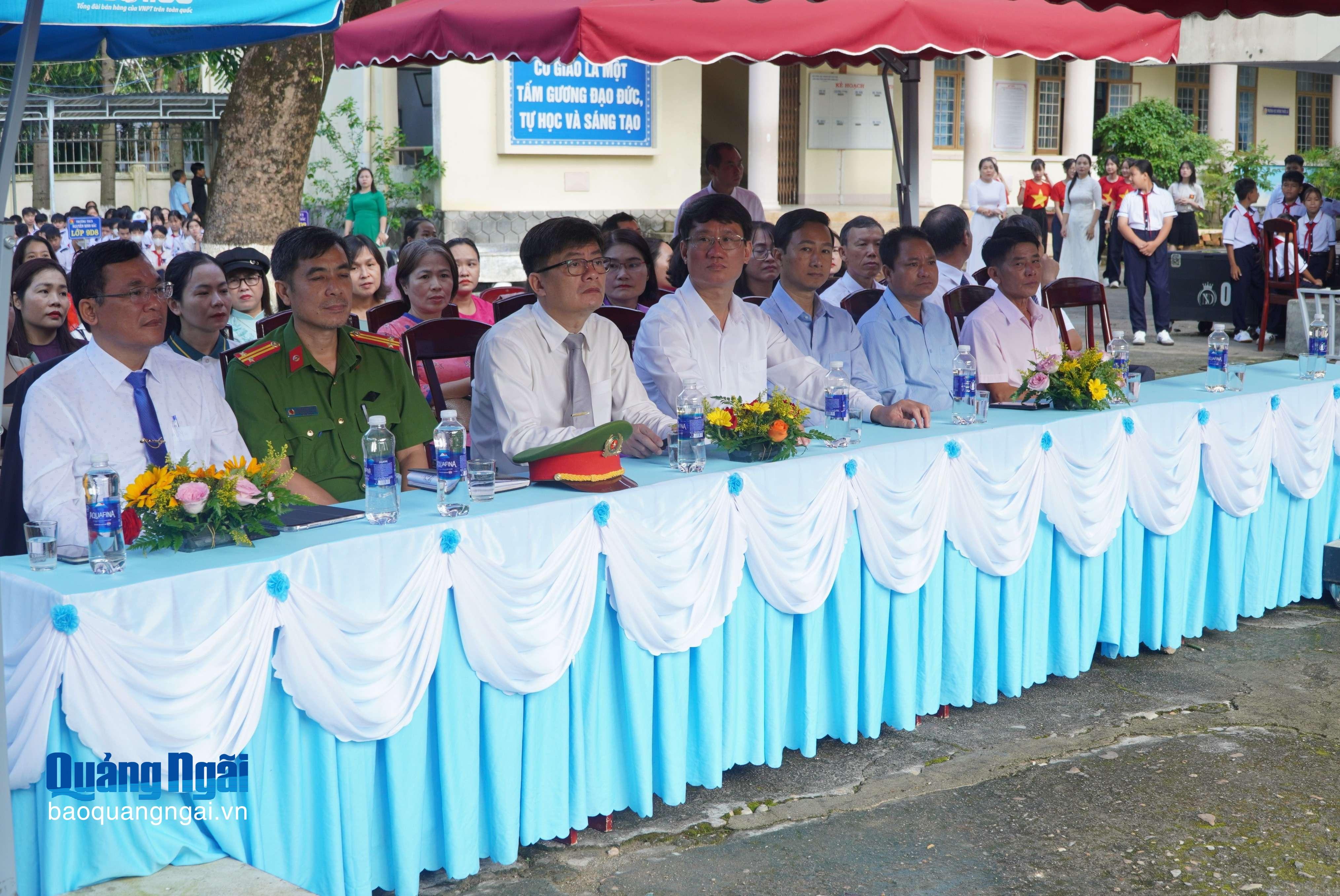 Ủy viên Ban Thường vụ Tỉnh ủy, Trưởng ban Tổ chức Tỉnh ủy Lữ Ngọc Bình, cùng các đại biểu tham dự Lễ khai giảng tại Trường THPT số 1 Nghĩa Hành.