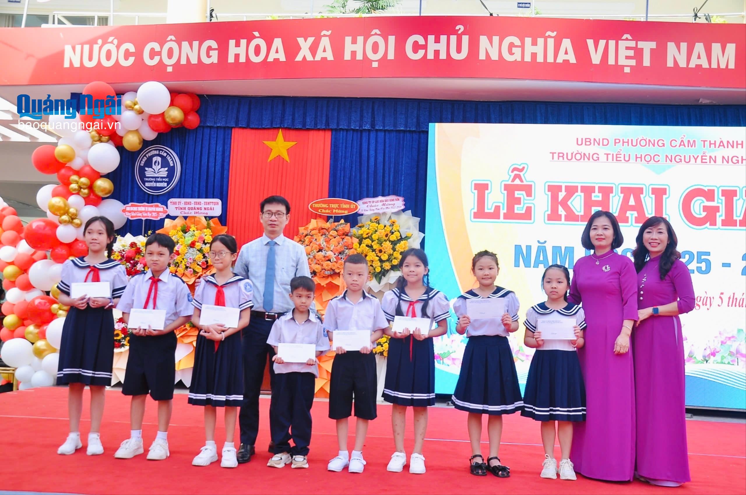 Dịp này, UBND phường Cẩm Thành đã trao 8 suất học bổng “Tiếp sức đến trường” cho 8 học sinh, với mỗi suất trị giá 1 triệu đồng; nhà trường trao 15 suất quà cho học sinh có hoàn cảnh khó khăn nhằm động viên các em tiếp tục nỗ lực trong năm học mới.