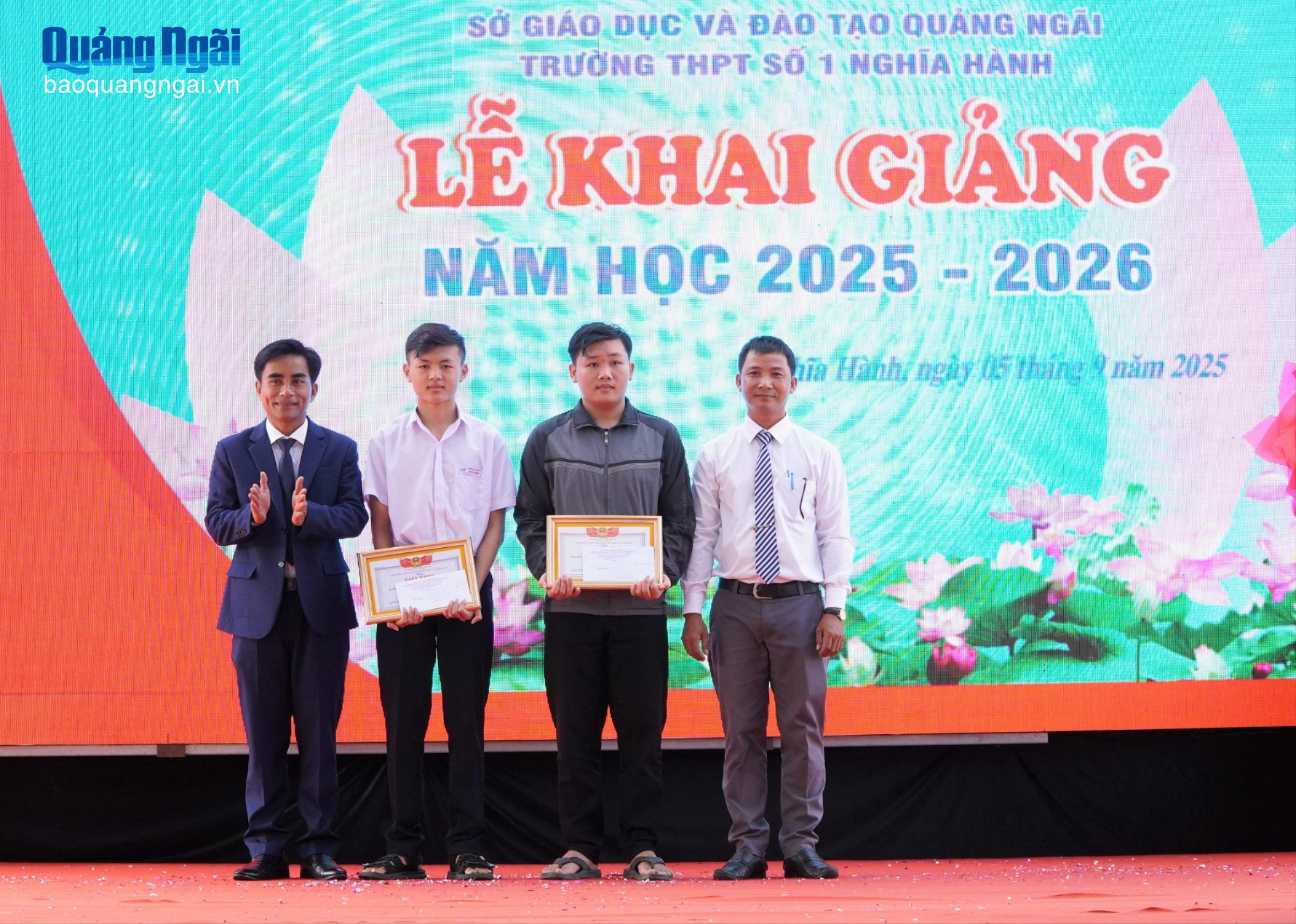 Bước vào năm học 2025 - 2026, Trường THPT số 1 Nghĩa Hành có 28 lớp với 1.090 học sinh, trong đó có 310 học sinh lớp 10; 76 cán bộ, giáo viên, nhân viên. Nhà trường đặt mục tiêu tiếp tục đổi mới phương pháp dạy học theo Chương trình giáo dục phổ thông 2018; rèn luyện phẩm chất, kỹ năng sống cho học sinh, gắn kết chặt chẽ với phụ huynh và địa phương. Đặc biệt, nhà trường chú trọng thực hiện hiệu quả Nghị quyết số 71-NQ/TW ngày 22/8/2025 của Bộ Chính trị về đột phá phát triển giáo dục và đào tạo.