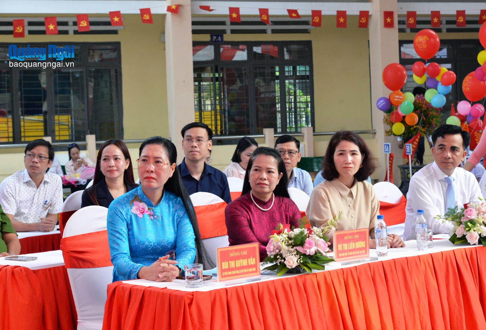 Ủy viên Trung ương Đảng, Bí thư Tỉnh ủy Bùi Thị Quỳnh Vân và các đại biểu dự Lễ khai giảng tại Trường Tiểu học Chánh Lộ.