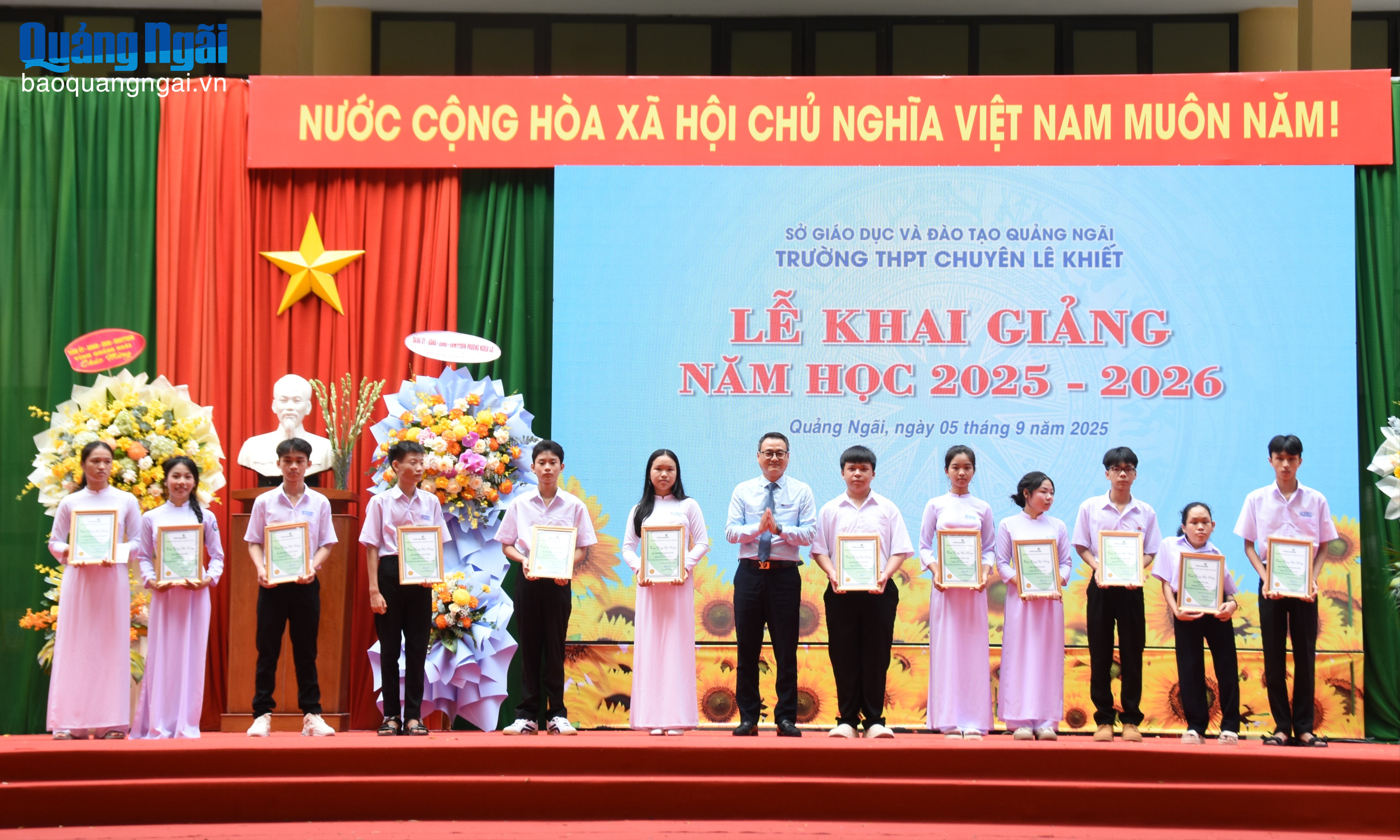* Sáng 5/9, Phó Chủ tịch UBND tỉnh Nguyễn Ngọc Sâm dự Lễ khai giảng năm học 2025 - 2026 tại Trường THPT Chuyên Lê Khiết. Buổi lễ diễn ra trong không khí trang trọng, ý nghĩa, với sự tham dự của gần 1.300 giáo viên và học sinh nhà trường.