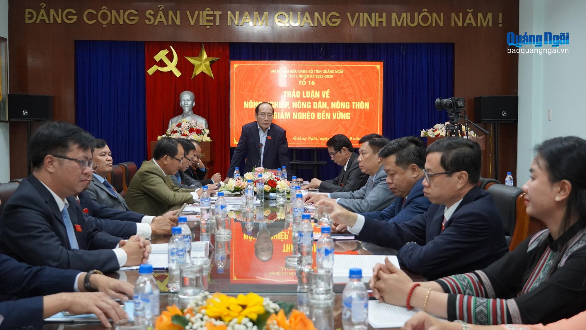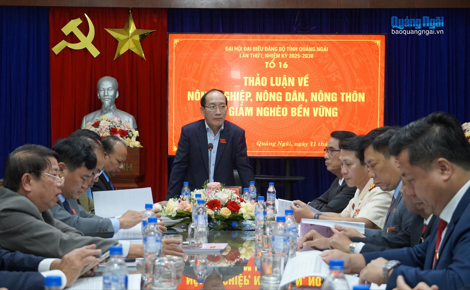 Chiều 11/9, tại Đại hội đại biểu Đảng bộ tỉnh Quảng Ngãi lần thứ I, nhiệm kỳ 2025 - 2030, các đại biểu đã chia thành 16 tổ để thảo luận các nội dung quan trọng. Tổ thảo luận số 16 do Ủy viên Ban Thường vụ Tỉnh ủy, Bí thư Đảng ủy phường Kon Tum Nguyễn Thanh Hà chủ trì, đã tập trung thảo luận vào chủ đề "Nông nghiệp, nông dân, nông thôn và giảm nghèo bền vững".