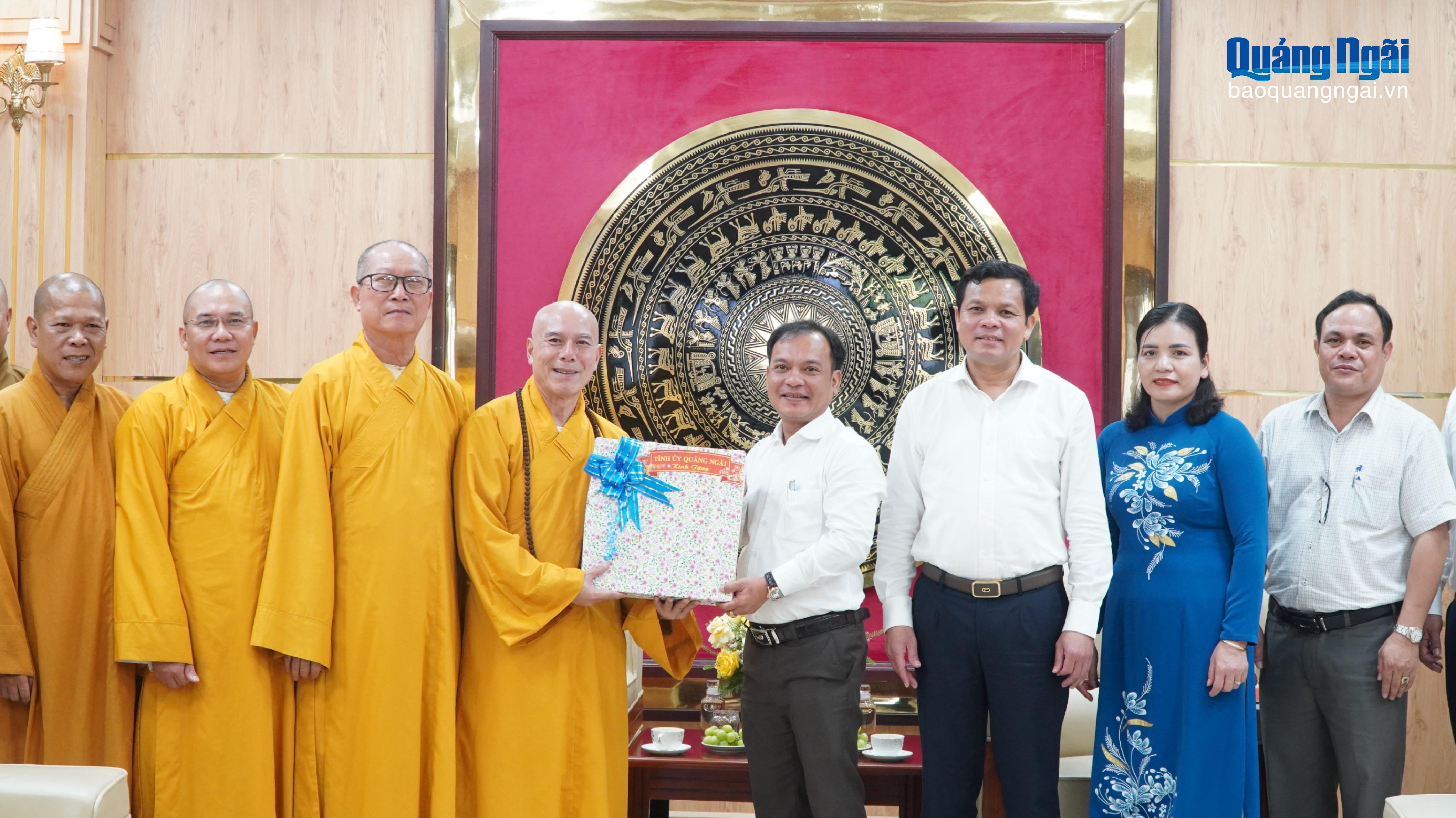 Thường trực Tỉnh ủy và Ban Trị sự Giáo hội Phật giáo Việt Nam tỉnh tặng quà nhân buổi gặp mặt, chào xã giao.