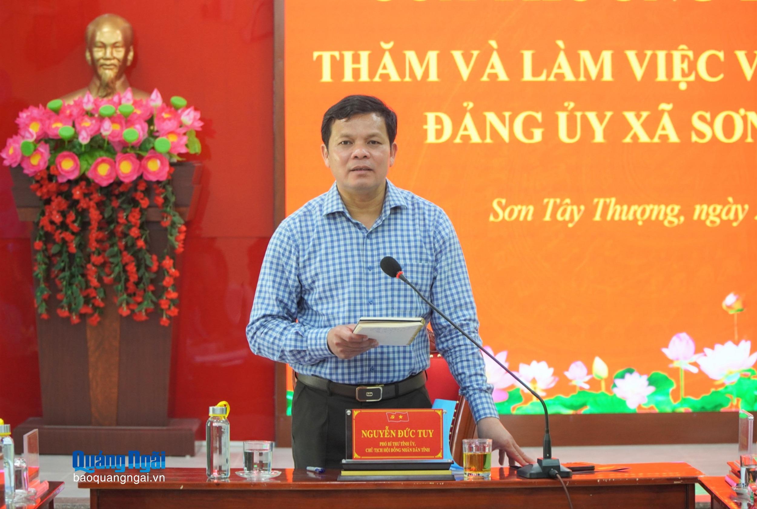 Phó Bí thư Tỉnh ủy, Chủ tịch HĐND tỉnh Nguyễn Đức Tuy ghi nhận, biểu dương tinh thần trách nhiệm và kết quả bước đầu mà Đảng ủy xã Sơn Tây Thượng đạt được sau sáp nhập.