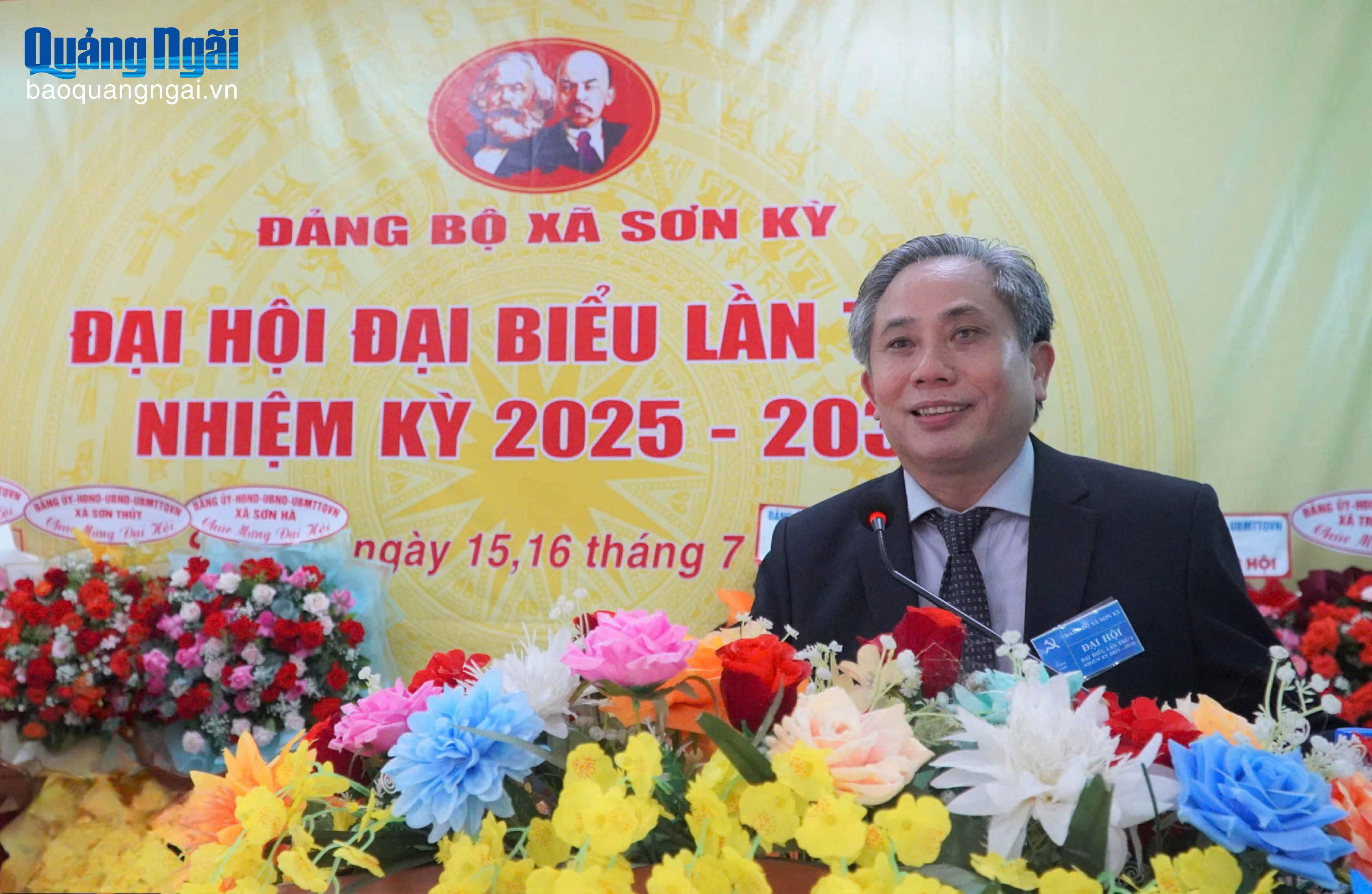 Phát biểu chỉ đạo tại đại hội, Ủy viên Ban Thường vụ Tỉnh ủy, Trưởng ban Tổ chức Tỉnh ủy Lữ Ngọc Bình nhấn mạnh, xã Sơn Kỳ có lợi thế về đất đai, điều kiện tự nhiên, vị trí kết nối liên vùng. Vì thế, Ban Chấp hành Đảng bộ, Ban Thường vụ Đảng ủy xã nhiệm kỳ 2025 - 2030 cần đổi mới tư duy, năng động và sáng tạo, tập trung lãnh đạo, chỉ đạo phát triển nông nghiệp, sản xuất hàng hóa đặc trưng của địa phương. Chú trọng hình thành các vùng sản xuất chuyên canh cây trồng có giá trị kinh tế cao, gắn với xây dựng chuỗi liên kết sản xuất, tiêu thụ, đảm bảo đầu ra cho nông sản của địa phương. Chăm lo, phát triển toàn diện văn hóa, xã hội; nâng cao chất lượng cuộc sống vì sự hài lòng và hạnh phúc của nhân dân.