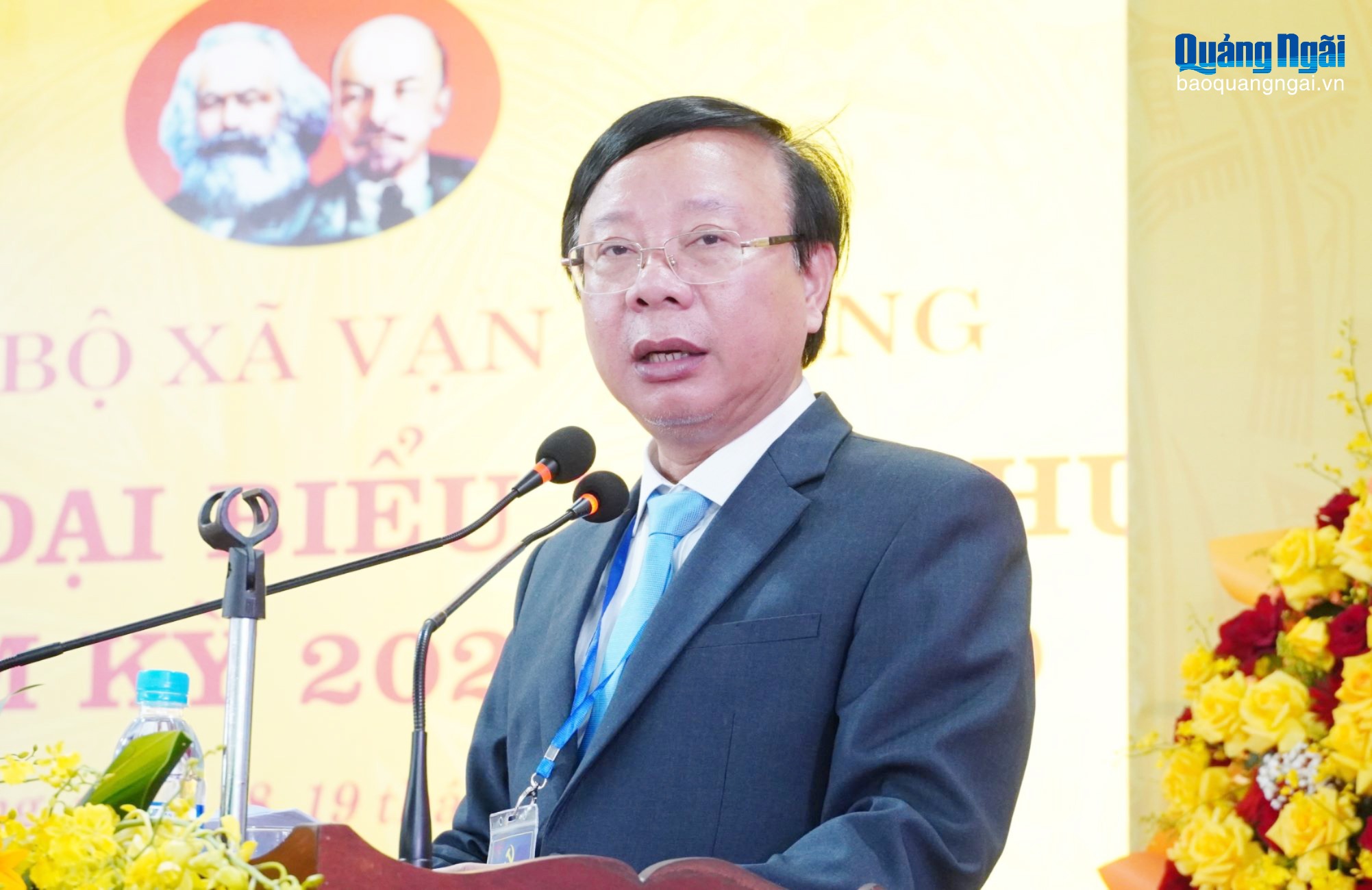 Phát biểu chỉ đạo tại đại hội, Ủy viên Ban Thường vụ Tỉnh ủy, Trưởng ban Quản lý KKT Dung Quất và các KCN Quảng Ngãi Lương Kim Sơn nhấn mạnh, trong thời gian tới, Đảng ủy xã Vạn Tường cần phát huy truyền thống cách mạng, đoàn kết, đồng lòng xây dựng hệ thống chính trị trong sạch, vững mạnh; chung sức xây dựng xã Vạn Tường vững mạnh về kinh tế, xã hội, bảo đảm quốc phòng, an ninh, sớm đạt chuẩn nông thôn mới nâng cao, phát triển theo hướng công nghiệp, dịch vụ và đô thị.