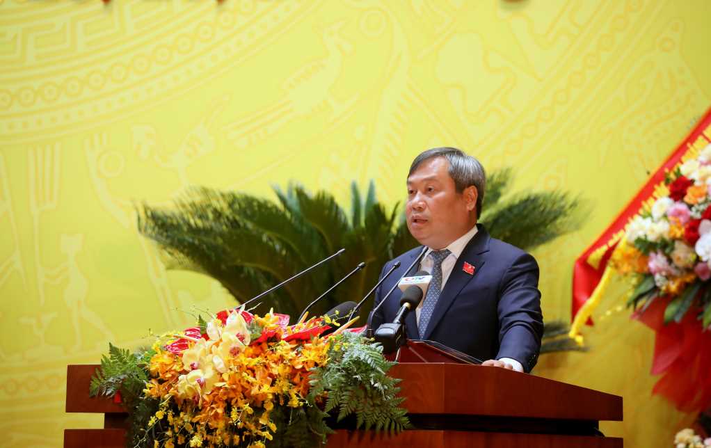 Đồng chí Vũ Đại Thắng, Ủy viên Trung ương Đảng, Bí thư Tỉnh ủy, Trưởng Đoàn ĐBQH tỉnh báo cáo Đề án nhân sự Ban Chấp hành Đảng bộ tỉnh khóa XVI do Ban Chấp hành Đảng bộ tỉnh khóa XV chuẩn bị.