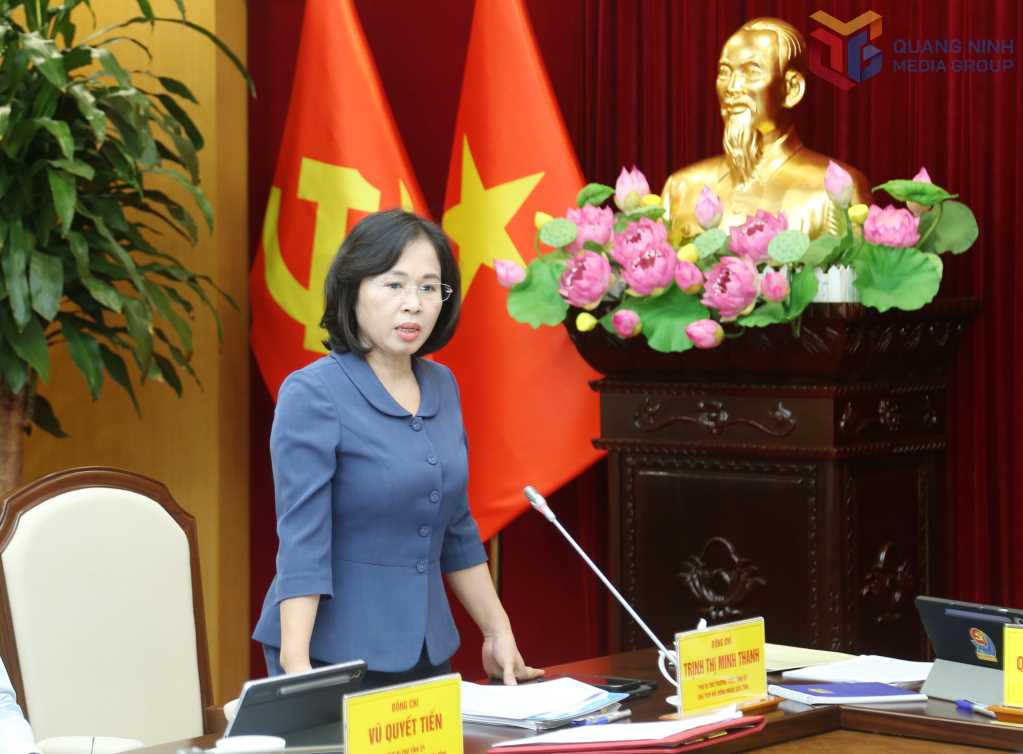 Đồng chí Trịnh Thị Minh Thanh, Phó Bí thư Thường trực Tỉnh ủy, Chủ tịch HĐND tỉnh, phát biểu tại hội nghị.