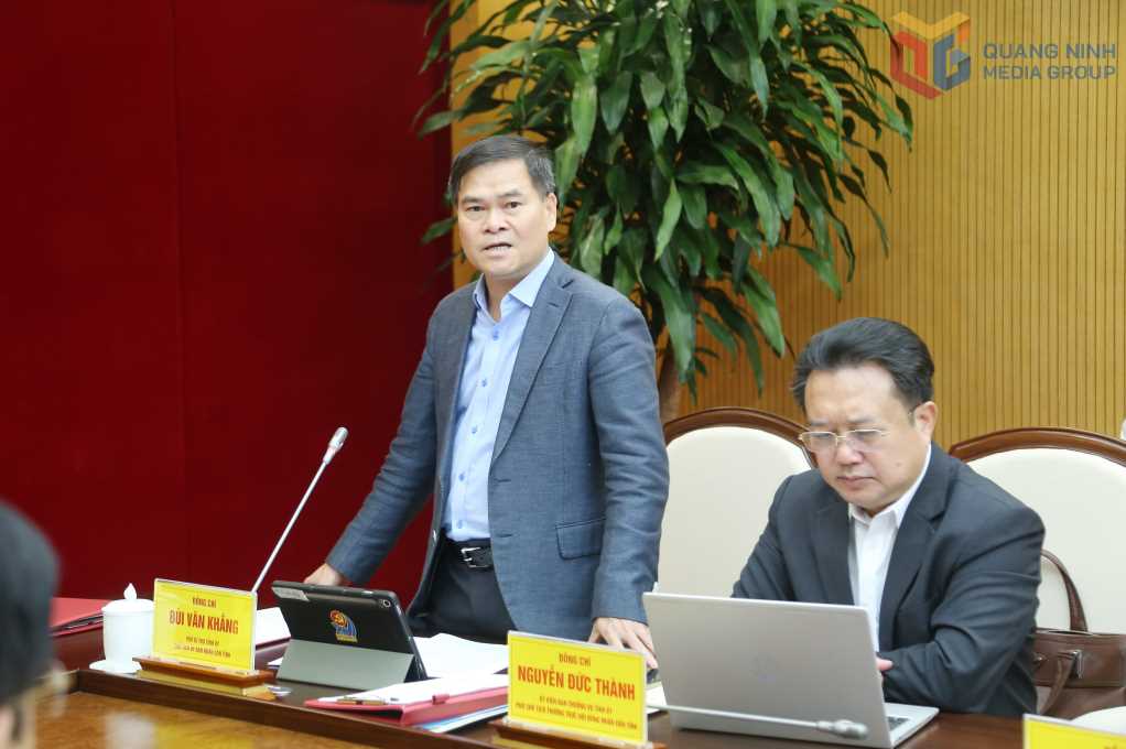 Đồng chí Bùi Văn Khắng, Phó Bí thư Tỉnh ủy, Chủ tịch UBND tỉnh, phát biểu tại hội nghị.