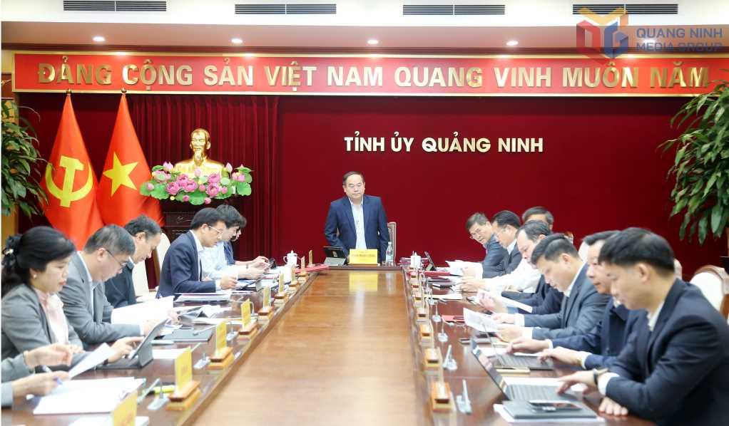 Đồng chí Quản Minh Cường, Bí thư Tỉnh ủy, chỉ trì Hội nghị giao ban Thường trực Tỉnh ủy.