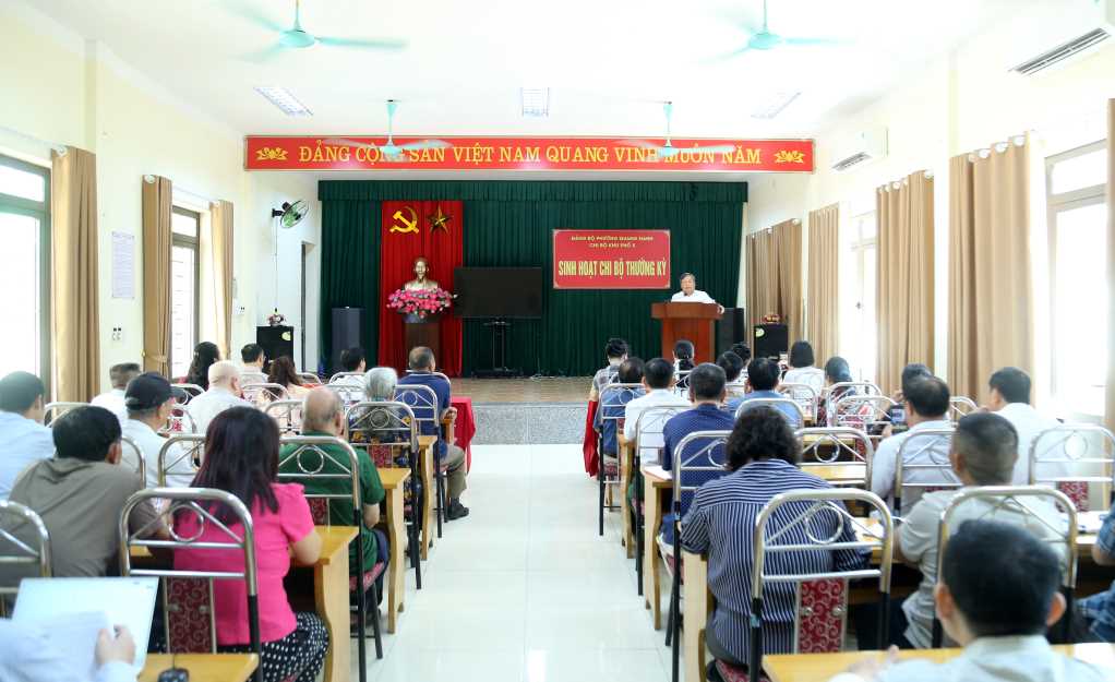 Cùng dự sinh hoạt chi bộ có đồng chí Dương Mạnh Cường, Ủy viên BTV Tỉnh ủy, Chánh Văn phòng Tỉnh ủy; đồng chí Đỗ Mạnh Hùng, Bí thư Đảng ủy phường Quang Hanh.