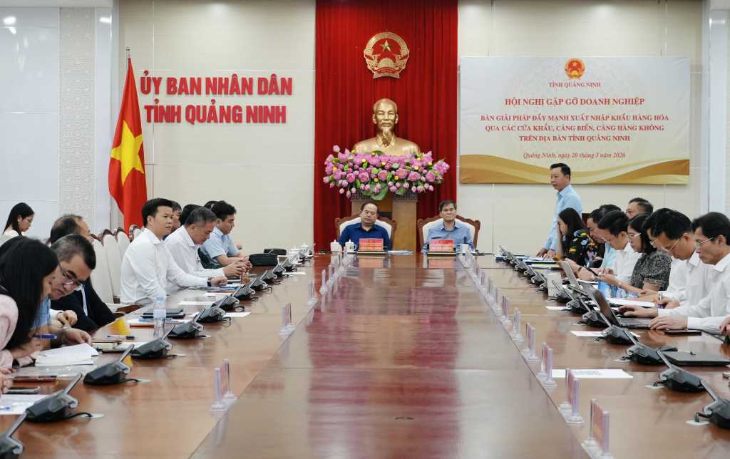 Chiều 20/3, tỉnh Quảng Ninh tổ chức Hội nghị gặp gỡ doanh nghiệp để bàn giải pháp đẩy mạnh xuất nhập khẩu (XNK) hàng hóa qua các cửa khẩu, cảng biển, cảng hàng không trên địa bàn tỉnh. Đồng chí Quản Minh Cường, Ủy viên Trung ương Đảng, Bí thư Tỉnh ủy, Trưởng Đoàn ĐBQH tỉnh dự và chỉ đạo hội nghị; đồng chí Bùi Văn Khắng, Phó Bí thư Tỉnh ủy, Chủ tịch UBND tỉnh chủ trì hội nghị. Dự hội nghị còn có đồng chí Lê Văn Ánh, Phó Chủ tịch UBND tỉnh; đại diện các sở, ngành, địa phương liên quan và 71 doanh nghiệp đại diện trong lĩnh vực XNK.
