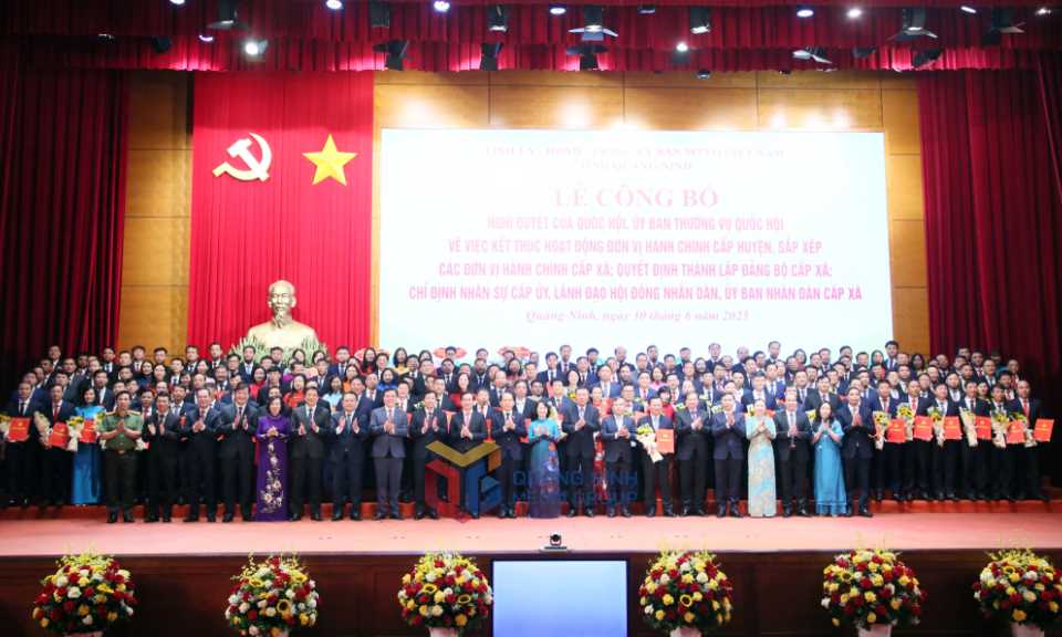 Ngày 30/6, Tỉnh ủy Quảng Ninh tổ chức Lễ công bố Nghị quyết của Quốc hội, Uỷ ban Thường vụ Quốc hội về việc kết thúc hoạt động đơn vị hành chính cấp huyện, sắp xếp các đơn vị hành chính cấp xã; quyết định thành lập đảng bộ cấp xã.