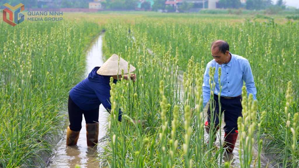Gia đình ông Nguyễn Xuân Hạnh, tổ 5, khu Bình Lục Hạ (phường Đông Triều) có thu nhập cao nhờ trồng cây hoa huệ.