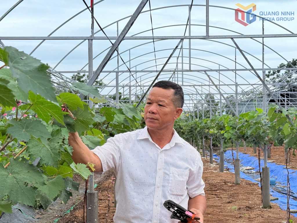 Nông dân giỏi Đồng Quang Cường, khu Cẩm Lũy, phường Phong Cốc phát triển mô hình trồng nho xanh nâng cao thu nhập.