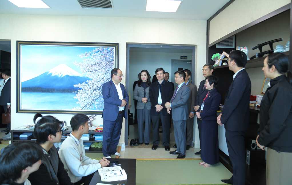 Đồng chí Bí thư Tỉnh ủy cùng đoàn công tác kiểm tra công tác dạy và học tiếng Nhật tại khoa Ngoại ngữ.