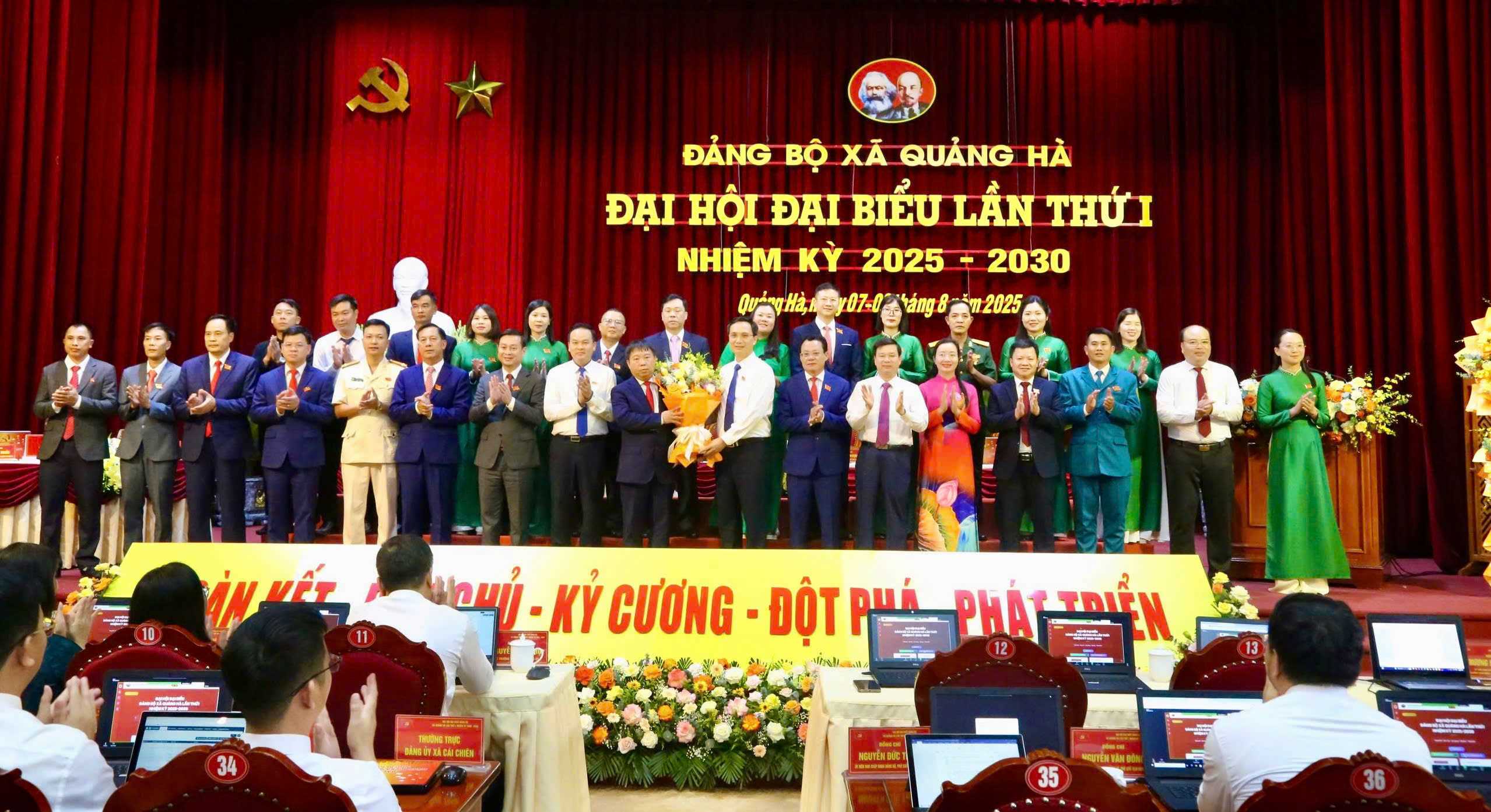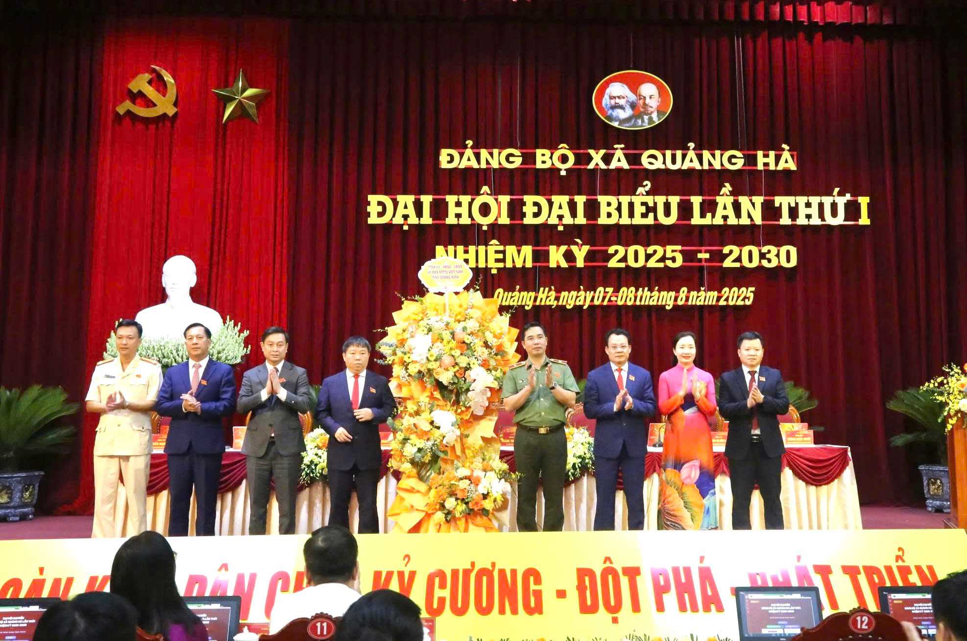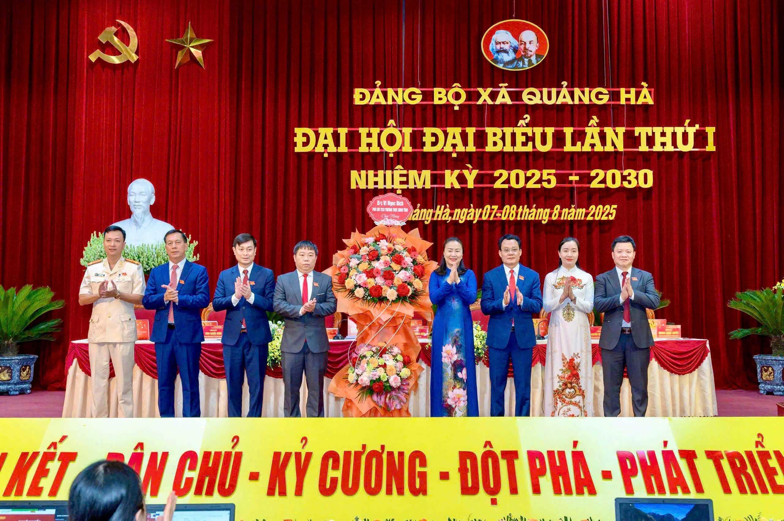 Trong 2 ngày 7 và 8/8, Đảng bộ xã Quảng Hà tổ chức Đại hội đại biểu Đảng bộ xã lần thứ I, nhiệm kỳ 2025-2030. Tham dự Đại hội có 199 đảng viên, đại diện cho hơn 2.000 đảng viên toàn Đảng bộ. Đến dự, chỉ đạo Đại hội có các đồng chí: Thiếu tướng Trần Văn Phúc, Ủy viên Ban Thường vụ Tỉnh uỷ, Giám đốc Công an tỉnh; Vi Ngọc Bích, Ủy viên Ban Thường vụ Tỉnh uỷ, Phó Chủ tịch Thường trực HĐND tỉnh.