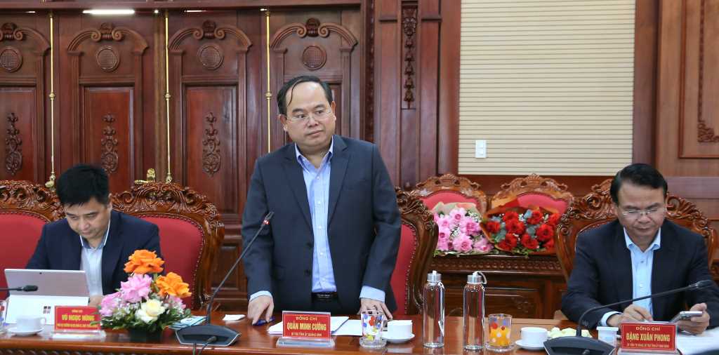 Đồng chí Quản Minh Cường, Bí thư Tỉnh ủy, Trưởng đoàn Đại biểu Quốc hội tỉnh, Bí thư Đảng uỷ Quân sự tỉnh Quảng Ninh, phát biểu tham luận tại hội nghị.