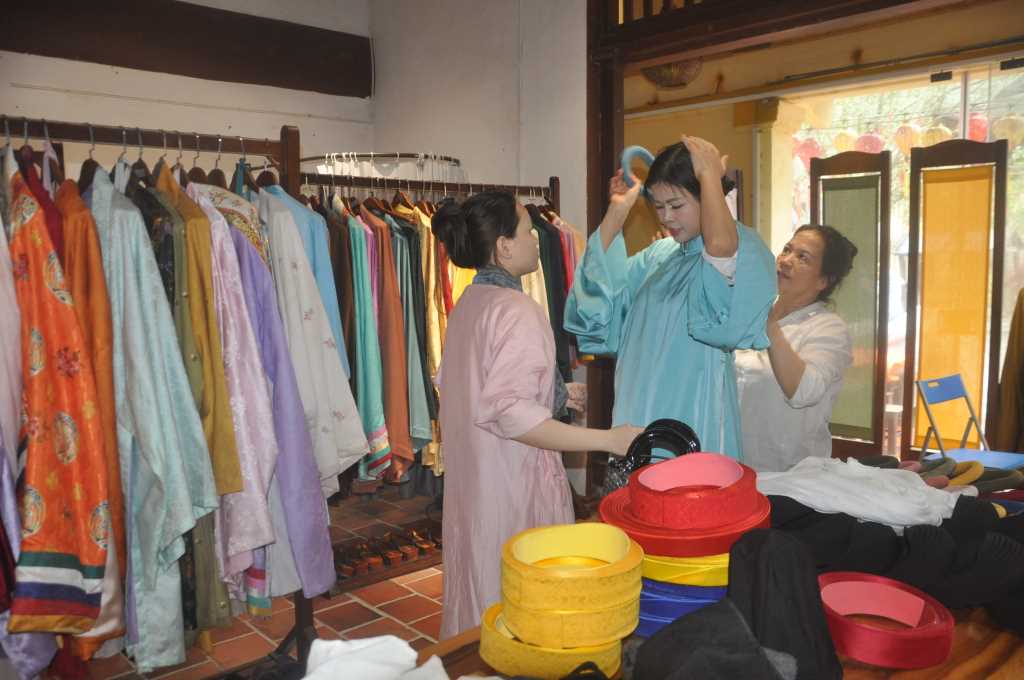 Du khách trải nghiệm cổ phục khi về với danh sơn Yên Tử.
