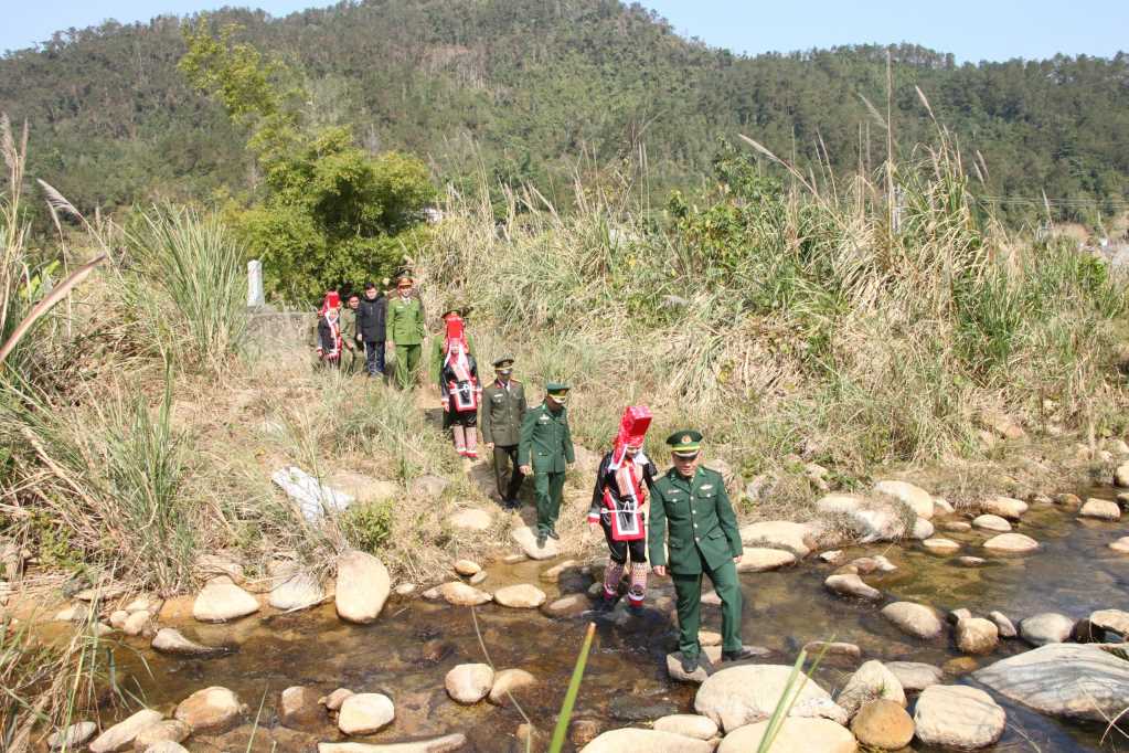 Cán bộ chiến sĩ Đồn biên phòng Hoành Mô cùng bà con dân bản tuần tra đường biên, cột mốc.