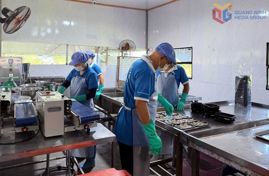 Chế biến thủy sản tại Công ty TNHH Thủy hải sản Tất Thành (phường Liên Hòa).