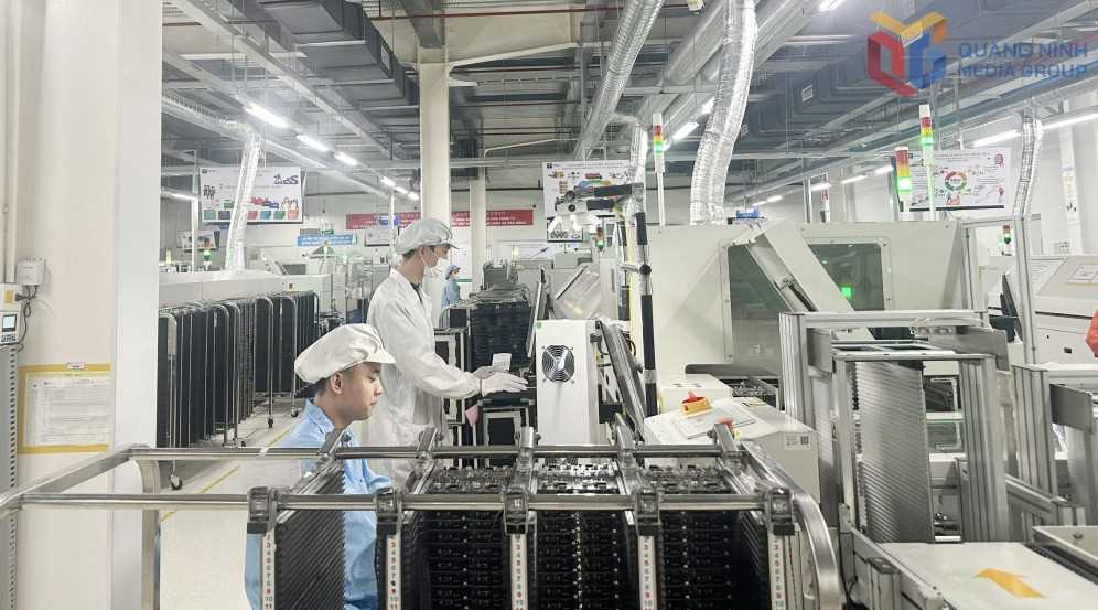 Công nhân Công ty Kỹ thuật điện tử Tonly Việt Nam (KCN Đông Mai) gia công sản phẩm. Ảnh: Cao Quỳnh