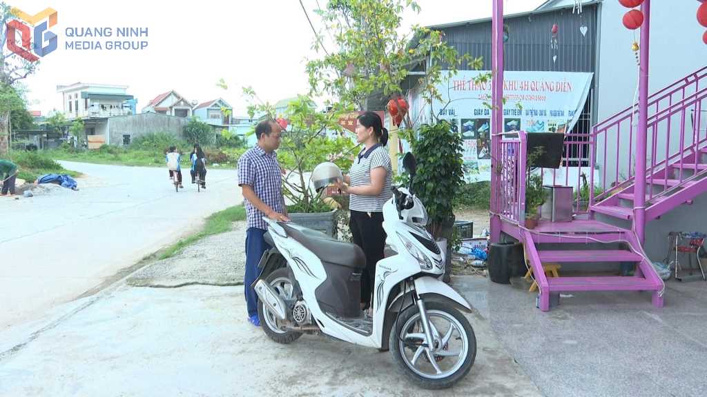 Người dân xã Quảng Hà tuyên truyền, nhắc nhở nhau đội MBH khi tham gia giao thông bằng xe mô tô.
