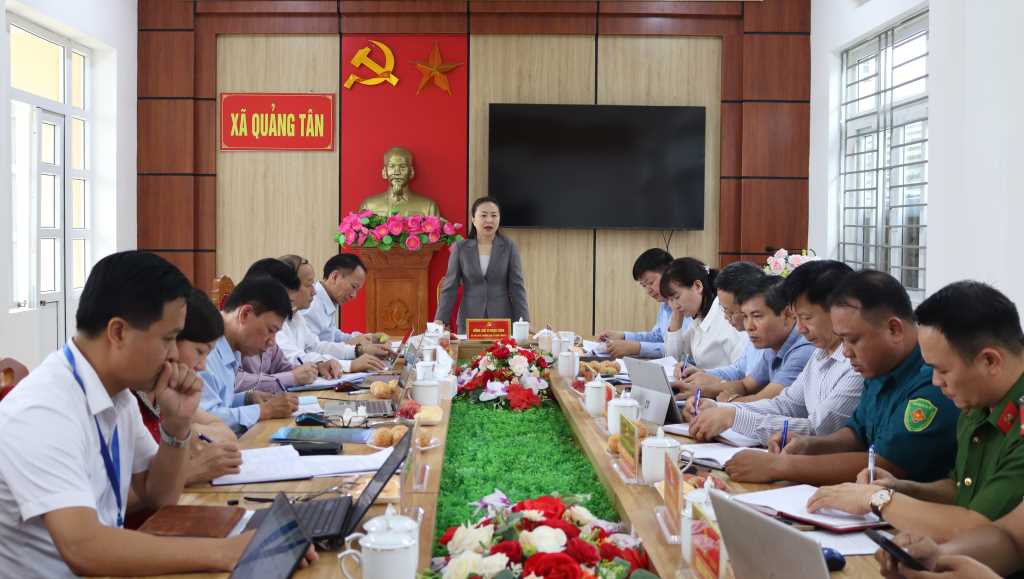 Kết luận tại buổi làm việc, đồng chí Vi Ngọc Bích, Ủy viên Ban Thường vụ Tỉnh ủy, Trưởng Ban Tổ chức Tỉnh ủy đã ghi nhận, đánh giá cao sự chủ động, tích cực trong công tác lãnh đạo, chỉ đạo và những kết quả xã Quảng Tân đã đạt được trong thời gian qua. Đồng chí đề nghị trong thời gian tới, xã Quảng Tân tiếp tục tập trung tăng cường công tác xây dựng Đảng, hệ thống chính trị trong sạch, vững mạnh; triển khai, cụ thể hóa các văn bản, chỉ đạo, quy định của Trung ương, của tỉnh đảm bảo vận hành tổ chức bộ máy hiệu quả, thông suốt; tiếp tục rà soát, sắp xếp tổ chức bộ máy đảm bảo tinh gọn, phù hợp, đúng quy định, đáp ứng yêu cầu nhiệm vụ; tiếp tục nâng cao chất lượng tổ chức cơ sở Đảng, chất lượng sinh hoạt chi bộ; quan tâm bồi dưỡng, nâng cao chất lượng đội ngũ bí thư chi bộ đồng thời là trưởng thôn, bản; thực hiện nghiêm văn bản chỉ đạo của Trung ương, của tỉnh về đánh giá cán bộ; chủ động chuẩn bị cho cuộc bầu cử đại biểu Quốc hội và HĐND các cấp theo luật định. Xã cũng cần khai thác tốt tiềm năng, lợi thế để phát triển kinh tế gắn với xây dựng nông thôn mới, nâng cao đời sống nhân dân; rà soát, đánh giá lại các chỉ tiêu phát triển kinh tế - xã hội; xác định rõ mục tiêu, rõ thời gian hoàn thành, rõ kết quả, rõ trách nhiệm; quan tâm phát triển các mô hình kinh tế hiệu quả; mở rộng quy mô sản xuất, nâng cao chất lượng, sản lượng các sản phẩm OCOP. Đồng thời quan tâm đẩy mạnh công tác quy hoạch, thu hút đầu tư, quản lý đất đai, tài nguyên, môi trường; chuẩn bị tốt các điều kiện khởi công các dự án năm 2026; triển khai tốt các công trình, dự án thực hiện chỉnh trang khu dân cư theo Kế hoạch số 272-KH/UBND ngày 21/10/2025 của UBND tỉnh.