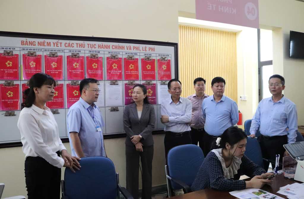 Đồng chí Trưởng Ban Tổ chức Tỉnh ủy và đoàn công tác thăm Trung tâm phục vụ hành chính công xã.