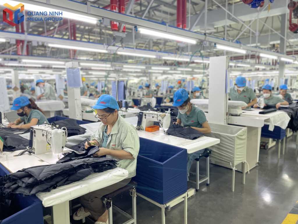Sản xuất hàng hóa tại Công ty TNHH May mặc Hoa Lợi Đạt (KCN Texhong Hải Hà).