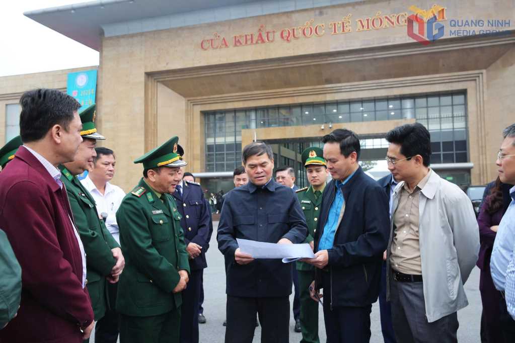 Đồng chí Bùi Văn Khắng, Phó Bí thư Tỉnh ủy, Chủ tịch UBND tỉnh, kiểm tra quá trình triển khai xây dựng cửa khẩu thông minh tại Cửa khẩu quốc tế Móng Cái, tháng 12/2025. Ảnh: Minh Đức