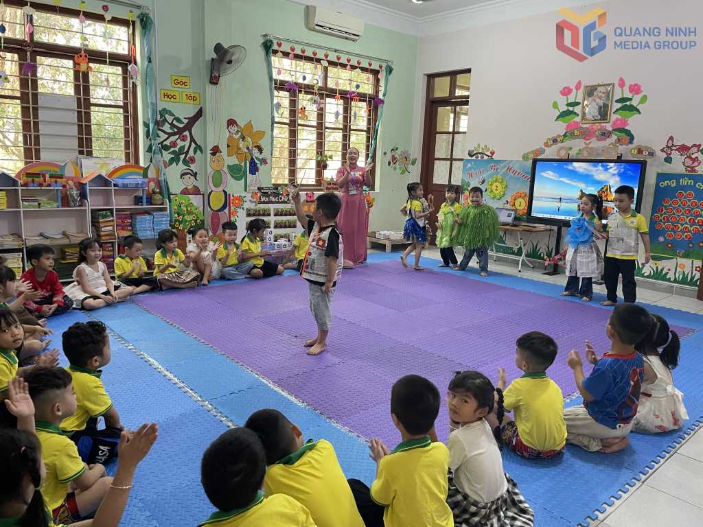 Cùng với tăng trưởng kinh tế, Quảng Ninh tiếp tục chăm lo phát triển xã hội. Trong ảnh: Một tiết học của học sinh Trường Mầm non Thượng Yên Công, phường Yên Tử.