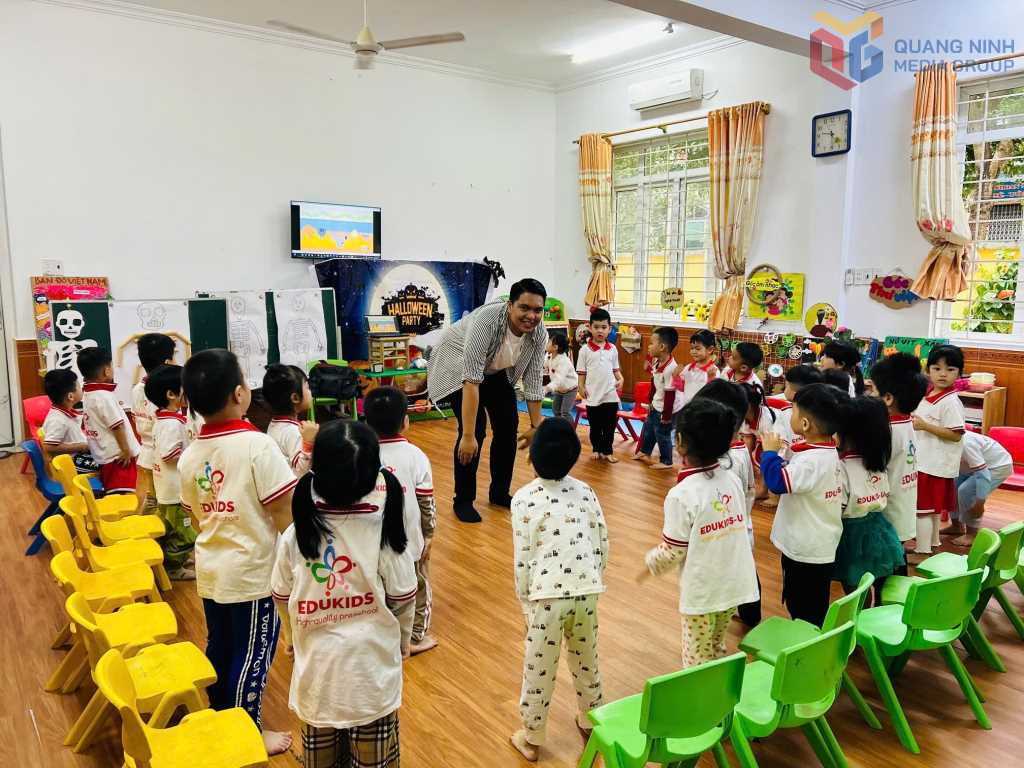 Một tiết học tiếng Anh đầy cảm hứng của thầy và trò Trường Mầm non Edukids Uông Bí. Ảnh: Việt Hoa
