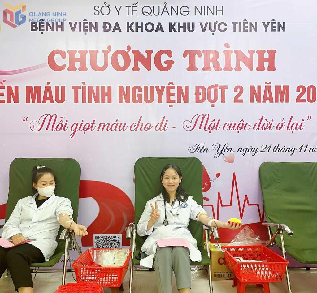 Y, bác sĩ Bệnh viện Đa khoa khu vực Tiên Yên tham gia hiến máu tình nguyện.